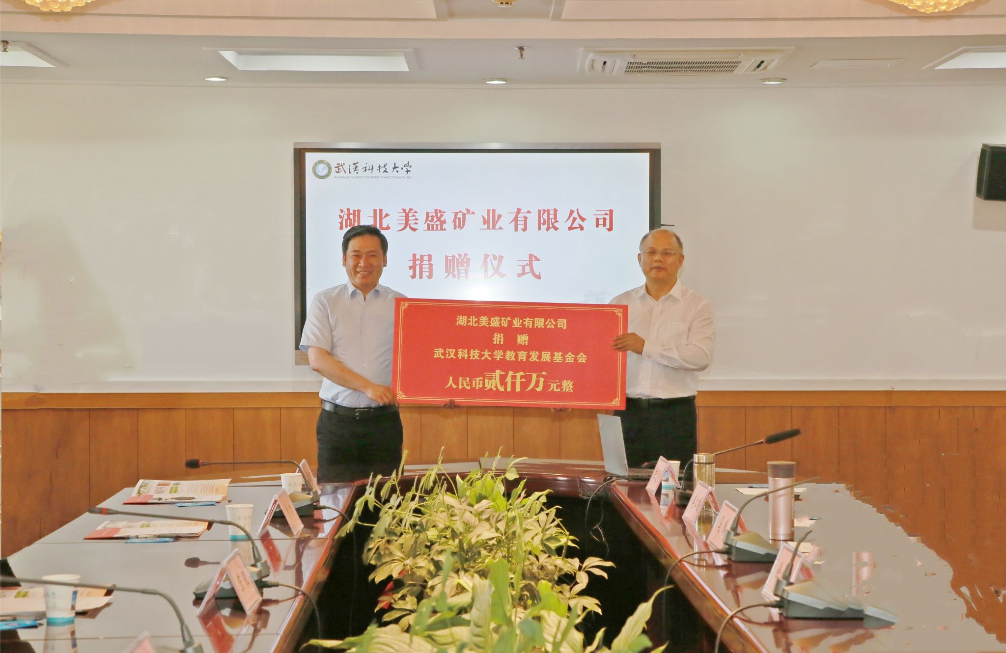 湖北美盛矿业有限公司副总经理刘桂男、李存朝,学校相关职能部门负责人出席捐赠仪式。