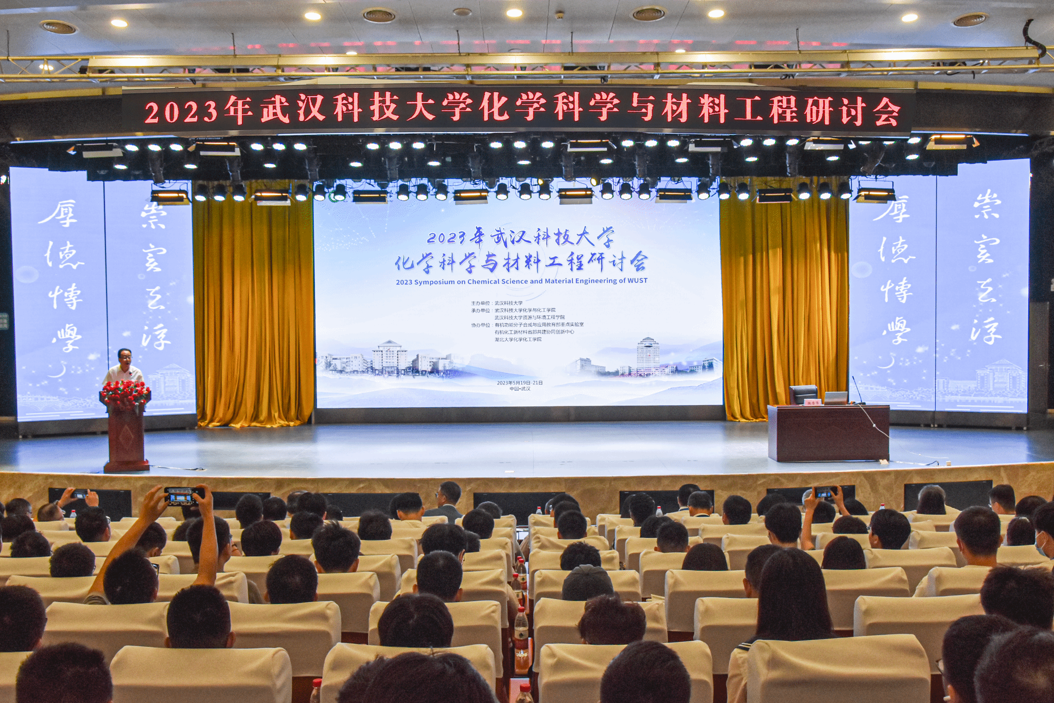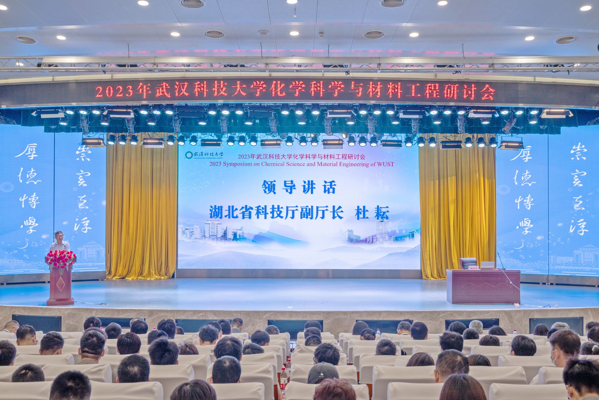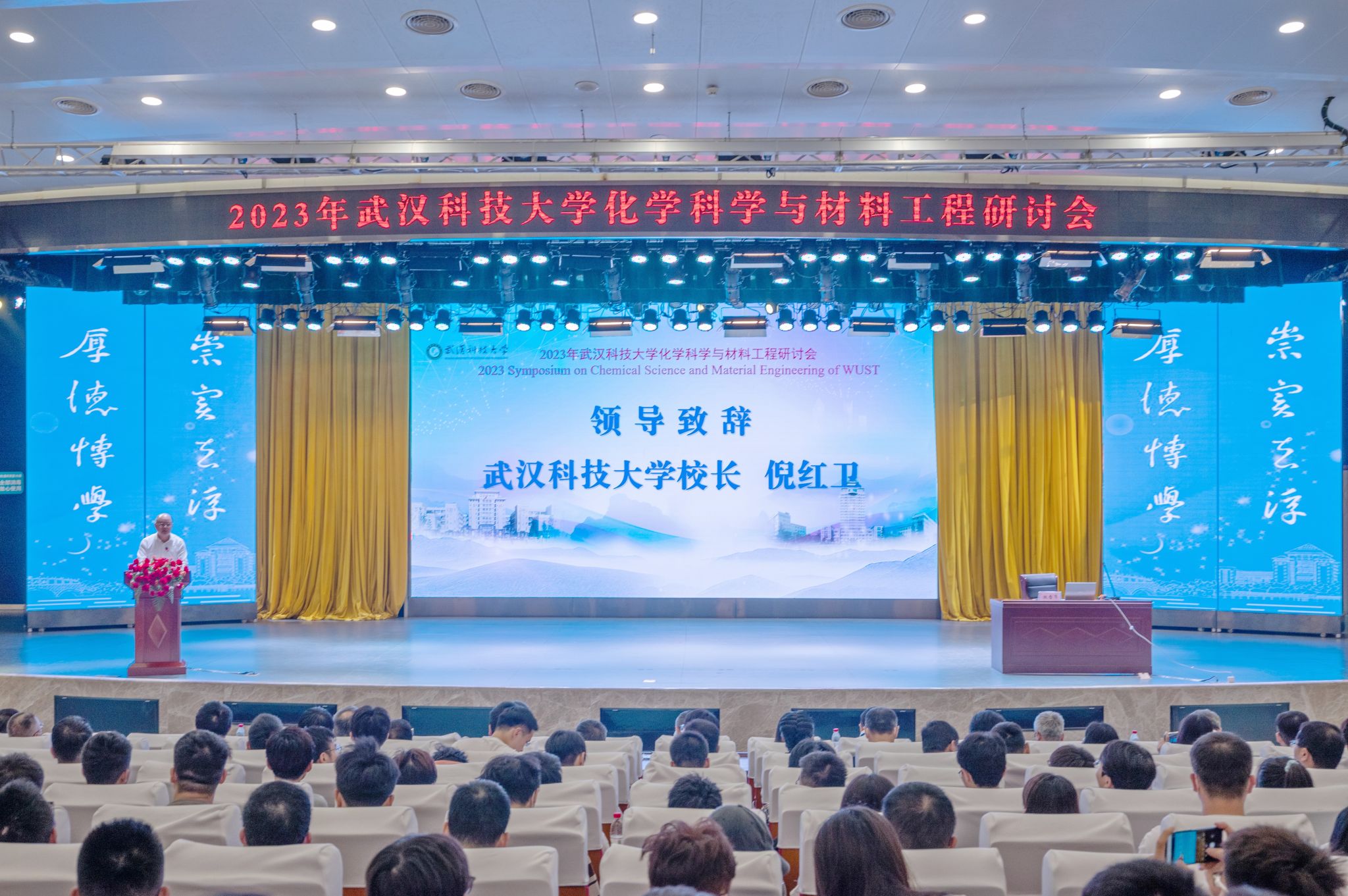 武科大网讯(通讯员 玛依努尔)5月20日,2023年Beat365中文官方网站化学科学与材料工程研讨会在Beat365官网青山校区碧园会堂召开,大会由化学与化工学院、资源与环境工程学院共同承办。Beat365官网党委书记徐雁冰、校长倪红卫、副校长马腾,湖北省科技厅副厅长杜耘,国内外百余名知名院士专家学者出席开幕式。开幕式由马腾主持。
