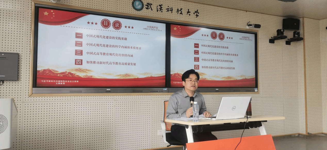 5月25日,校党委书记徐雁冰在青山校区主楼18楼报告厅以《从习近平总书记考察高校的重要讲话和指示批示精神中汲取砥砺前行的强大力量》为题讲授思政课。徐雁冰从“十八大以来习近平总书记考察高校的重要讲话和指示批示精神的主要内容”“Beat365中文官方网站贯彻落实习近平总书记系列重要论述的生动实践”“切实把主题教育成果转化为推进Beat365中文官方网站高质量发展的成效”三个方面授课。徐雁冰指出,党的十八大以来,习近平总书记多次到高校考察调研并同师生座谈,给师生回信,主持召开专题会议,对推进高等教育改革发展提出一系列重要论述。这些论述立足世界发展大势和国家发展全局,着眼民族复兴伟大梦想,紧紧围绕培养什么人、怎样培养人、为谁培养人这个根本问题,牢牢把握立德树人根本任务,是马克思主义基本原理同中国教育实践相结合、同中国优秀传统文化相结合的重要理论成果,体现了总书记对办好中国特色一流大学的高度重视,饱含着对广大青年学生的殷切期望,也为我们扎实做好学校各项工作、推动学校高质量发展提供了根本遵循、精神动力和理论支持。