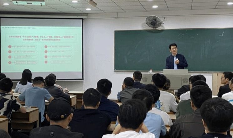 5月8日,校党委副书记盛建龙以《学习新时代新经典 奋进新征程新伟业》为题,为机械学院师生讲授思政课。盛建龙从习近平新时代中国特色社会主义思想的形成、重大意义、主要内容、把习近平新时代中国特色社会主义思想学深悟透等方面深入讲解。盛建龙指出,习近平新时代中国特色社会主义思想是中国共产党领导全国人民迈向新时代、开启新征程、续写新篇章的政治宣言和行动纲领,要运用党的创新理论指导实践、推动工作,要深刻领悟习近平总书记关于新时代人才工作理念,以问题为导向找准人才工作症结,以目标为导向擘画人才工作蓝图,以实践为导向构建人才工作体系,以效果为导向推动各项工作落地见效。