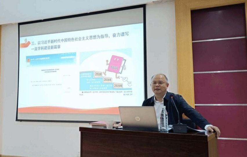 5月12日,校长倪红卫以《学思想强党性 奋力推进学校一流学科高质量发展》为题,为材冶学院师生讲授思政课。倪红卫从习近平新时代中国特色社会主义思想形成的时代背景、主要内容和科学体系,以及以习近平新时代中国特色社会主义思想为指导,奋力谱写一流学科建设新篇章等方面展开讲授。倪红卫指出,坚持和发展中国特色社会主义是习近平新时代中国特色社会主义思想的精髓要义。他从历史方位和发展阶段、时代主题和历史使命、最本质特征和政治立场、发展理念和施政布局、战略目标和战略安排、各领域发展思路和宏观部署、根本动力和法治保障、战略保障和外部条件、关键所在和决定性力量等方面,对习近平新时代中国特色社会主义思想的科学体系进行深入讲解。倪红卫强调,全力以赴推进一流学科建设,是深入学习贯彻习近平新时代中国特色社会主义思想的根本实践要求,全体师生必须提高政治站位,以高度的政治自觉、思想自觉、行动自觉,不折不扣落实“双一流”建设决策部署,答好时代答卷。