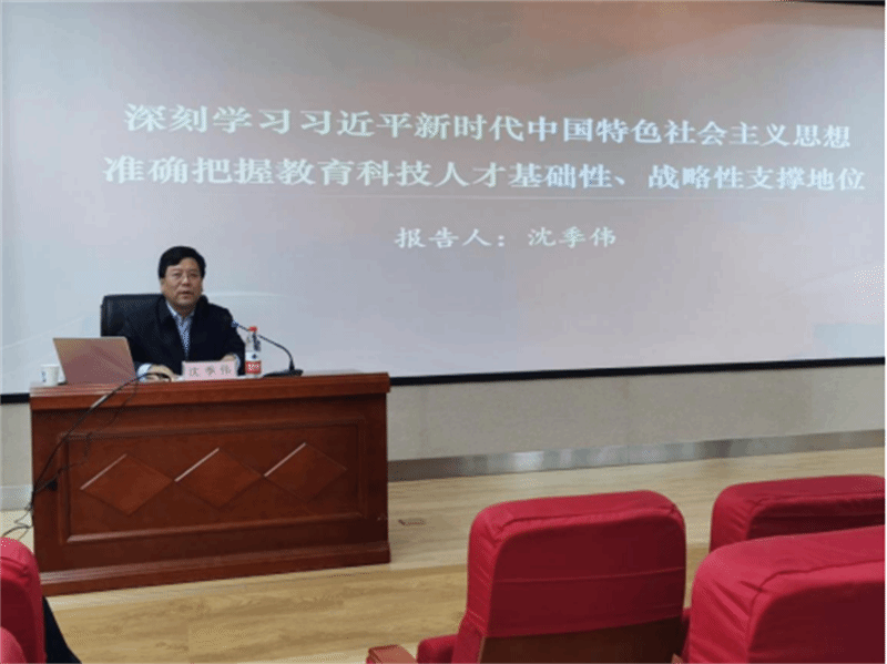 5月10日,学校党委常委、副校长沈季伟以《准确把握教育科技人才基础性、战略性支撑地位》为题,为计算机学院师生讲授思政课。沈季伟从全党开展学习贯彻习近平新时代中国特色社会主义思想主题教育的重大部署;教育科技人才是全面建设社会主义现代化国家的基础性战略性支撑;高质量推进新时代民生服务保障工作,主动担当服务育人使命等方面展开。他强调,要完整准确全面把握“教育科技人才是全面建设社会主义现代化国家的基础性、战略性支撑”这一重大论断,坚持立德树人,加强教师队伍建设,培养国家战略人才,打赢关键核心技术攻坚战,践行“以师生为主体”的发展思想,让广大师生有更多的获得感、幸福感和荣誉感。
