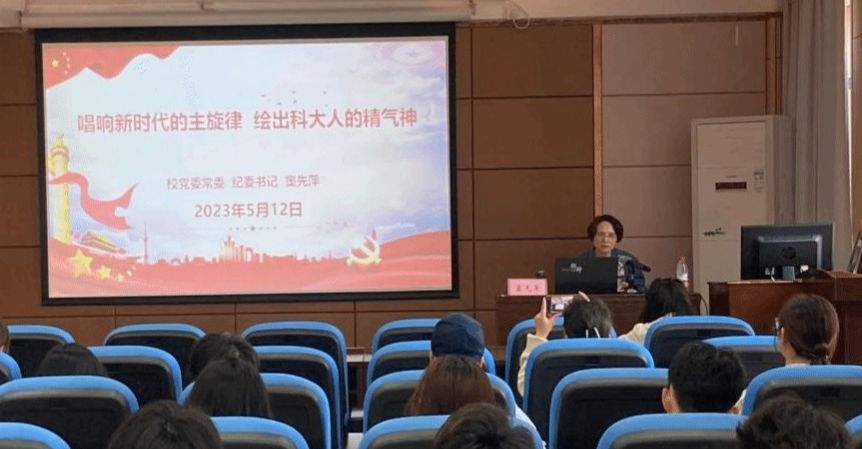 5月12日,学校党委常委、纪委书记窦先萍以《唱响新时代的主旋律 绘出科大人的精气神》为题,为艺术学院师生讲授思政课。窦先萍围绕学习贯彻习近平新时代中国特色社会主义思想,从全面认识习近平新时代中国特色社会主义思想,深刻理解党对文艺工作指明方向,实践建功结合特色推动学校、学院高质量发展等三个方面进行细致讲解。理论的价值在于指导实践,学习的目的全在于运用。窦先萍指出,作为高校文艺工作者,要全面把握习近平新时代中国特色社会主义思想,要从文艺的特殊性上深入理解习近平总书记对文艺工作指明的方向,并在此基础上指导具体实践,推动学校、学院高质量发展,在成就学校、成就学院中成就自我。