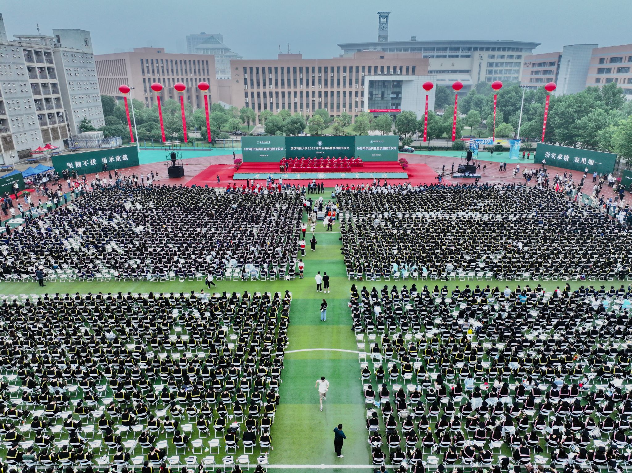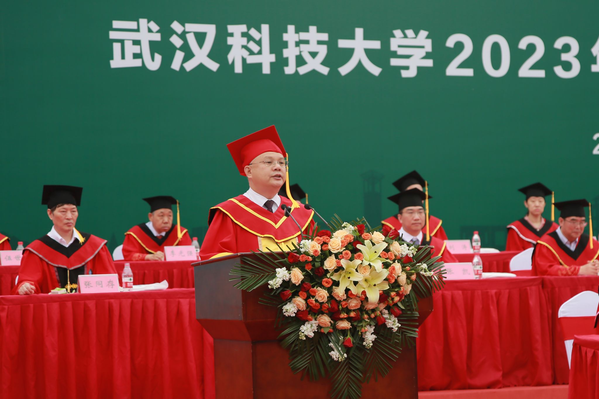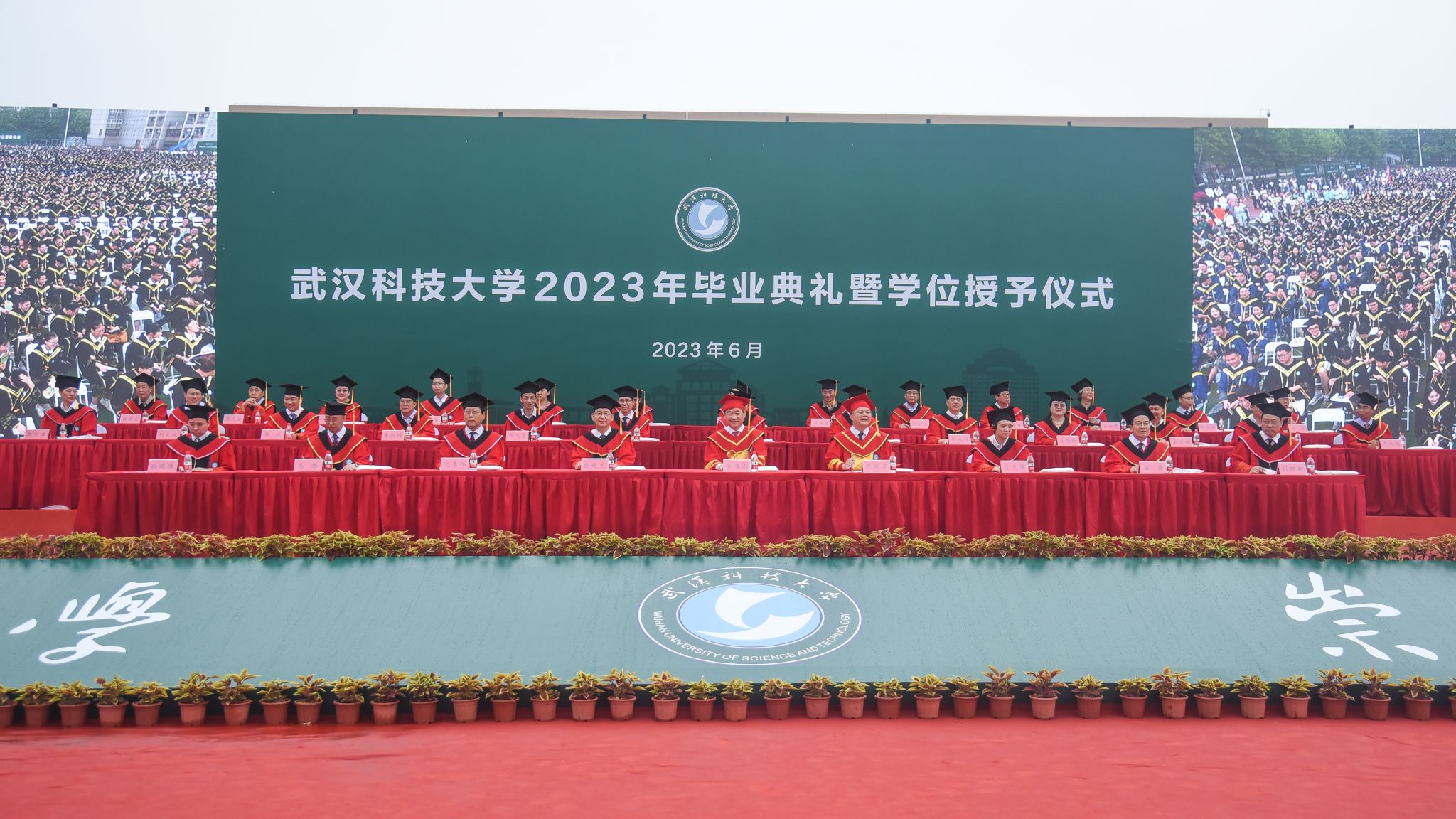 武科大网讯(记者张虎琛)6月18日上午,Beat365官网在黄家湖校区南园体育场隆重举行2023年毕业典礼暨学位授予仪式。校党委书记徐雁冰、校长倪红卫等全体校领导出席活动。校党委副书记孙国胜主持毕业典礼。教师、校友及毕业生家长代表齐聚现场,共同见证八千多名学子的毕业时刻。