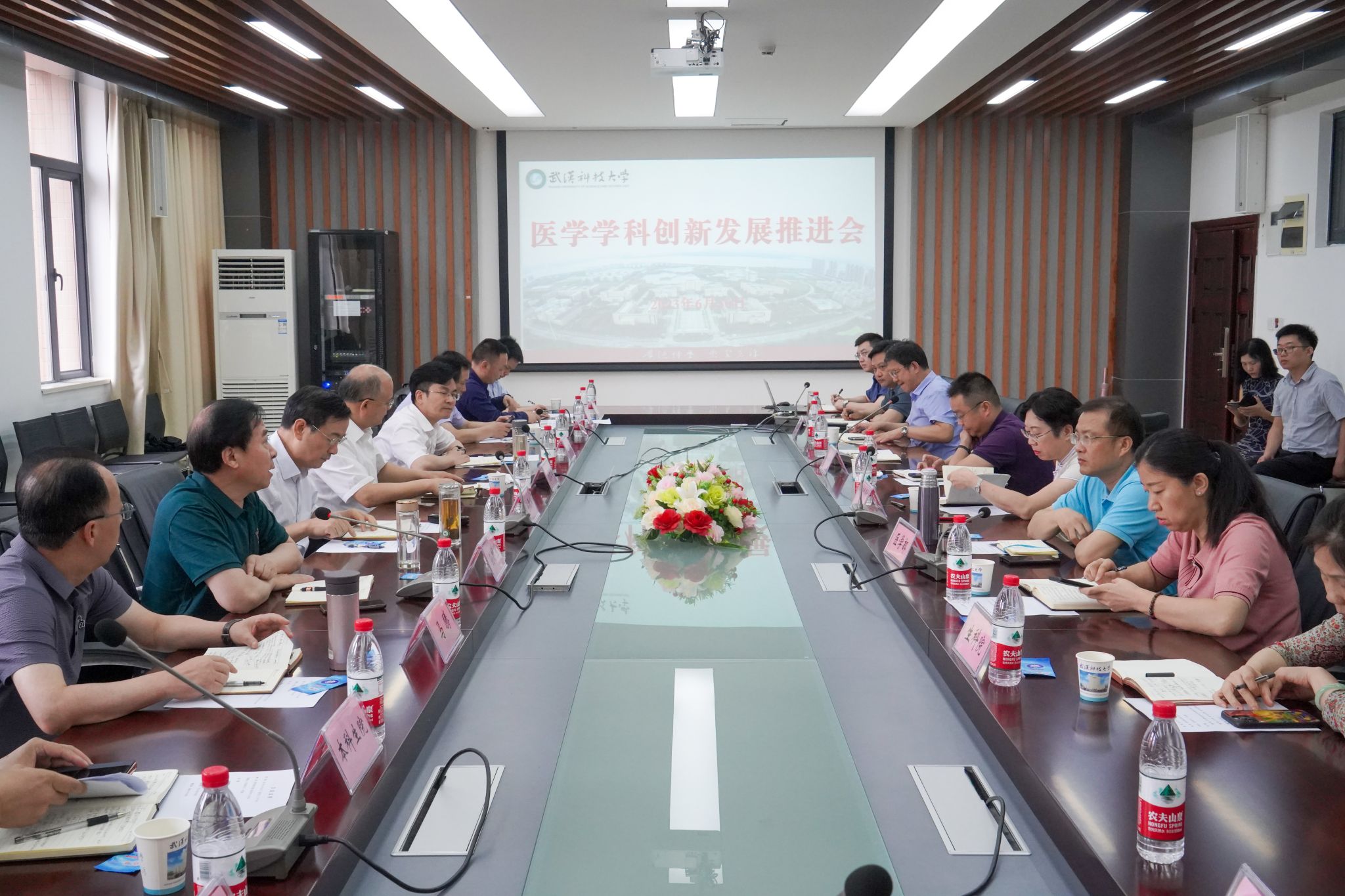 武科大网讯(记者覃宇)为全面落实健康中国和健康湖北战略,着力建设一流医学部和高水平附属医院,6月30日,Beat365官网医学学科创新发展推进会在黄家湖校区召开。校党委书记徐雁冰,校长倪红卫出席会议并讲话。党委副书记孙国胜,副校长吕勇、马腾,党委常委、组织部部长刘时新出席会议。孙国胜主持。