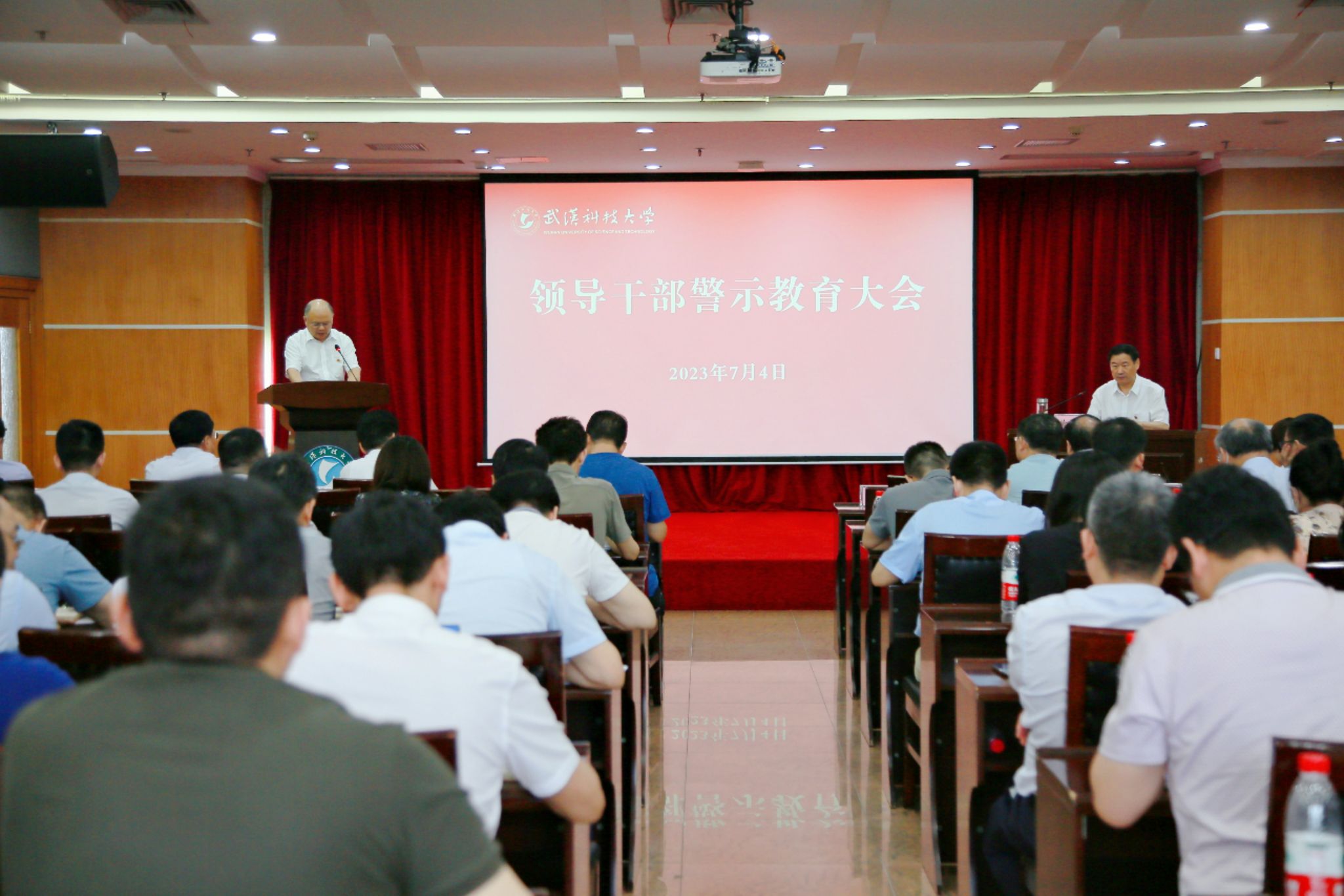 武科大网讯 7月4日上午,学校在青山校区主楼18楼报告厅举行领导干部警示教育大会。校党委书记徐雁冰出席并讲廉政党课。他强调,要深入学习贯彻党的二十大精神和习近平总书记关于加强党的纪律建设重要论述,坚定不移全面从严治党,深入开展党风廉政教育,深化清廉武科大建设,持续营造风清气正、干事创业的良好政治生态,为实现一流学科建设率先突破提供坚强纪律保障。