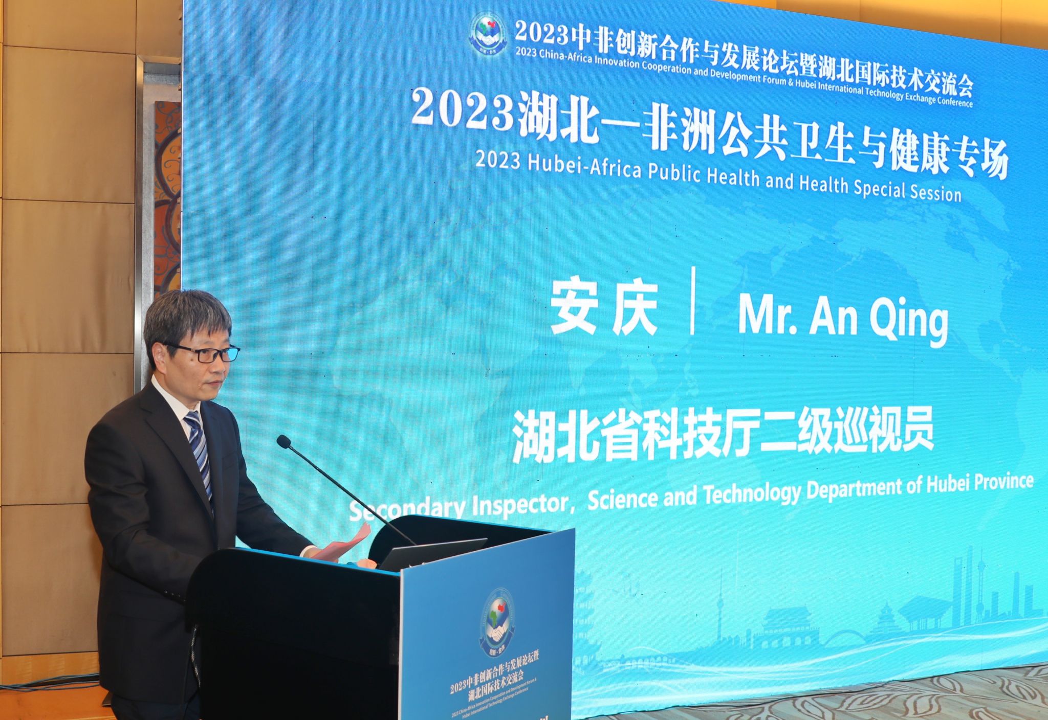 安庆在致辞中表示,本次专场研讨会,旨在加强新时代湖北和非洲在公共卫生与健康领域的创新合作,通过本次活动将进一步密切湖北省与非洲之间的科技合作,增进中非人民传统友谊,带动双方更多层次、更多方位的交流与合作。