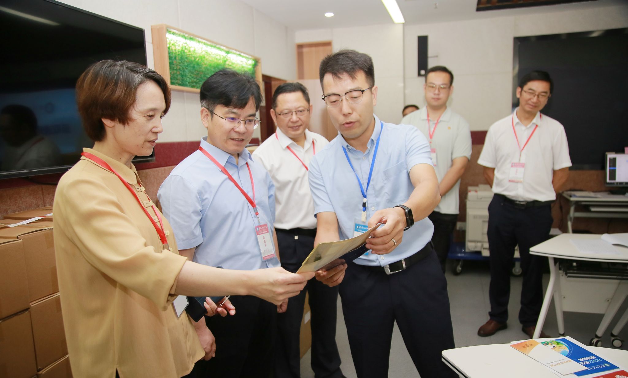 窦先萍和吕勇查看了今年的录取通知书、新生报到指南等资料,叮嘱工作人员,务必仔细核对,保证准确无误,并提醒现场的工作人员克服困难,确保准确投递。