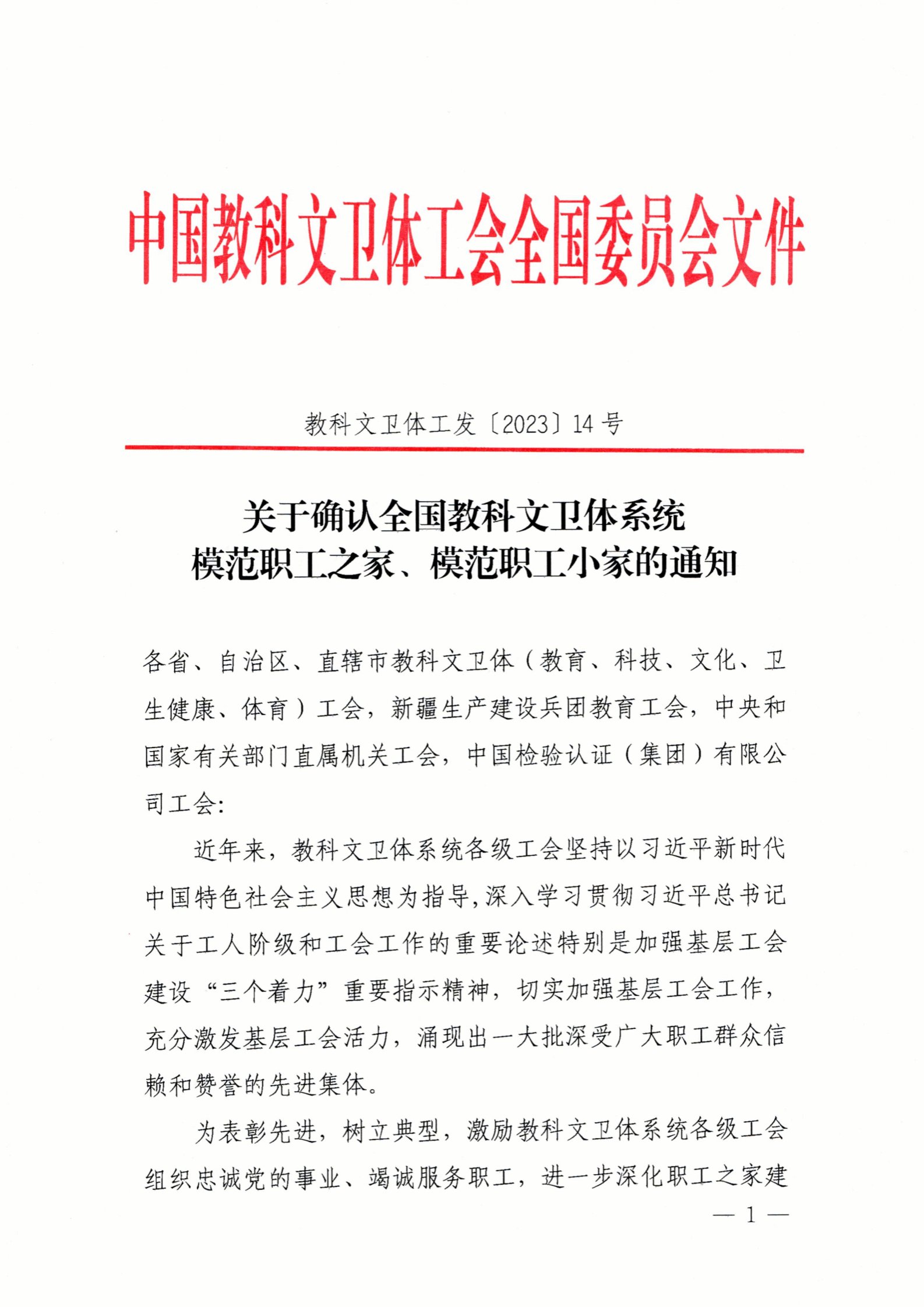 武科大网讯 8月28日,中国教科文卫体工会全国委员会印发了《关于确认全国教科文卫体系统模范职工之家、模范职工小家的通知》(教科文卫体工发〔2023 〕14号),Beat365官网工会获批全国教科文卫体系统模范职工之家。