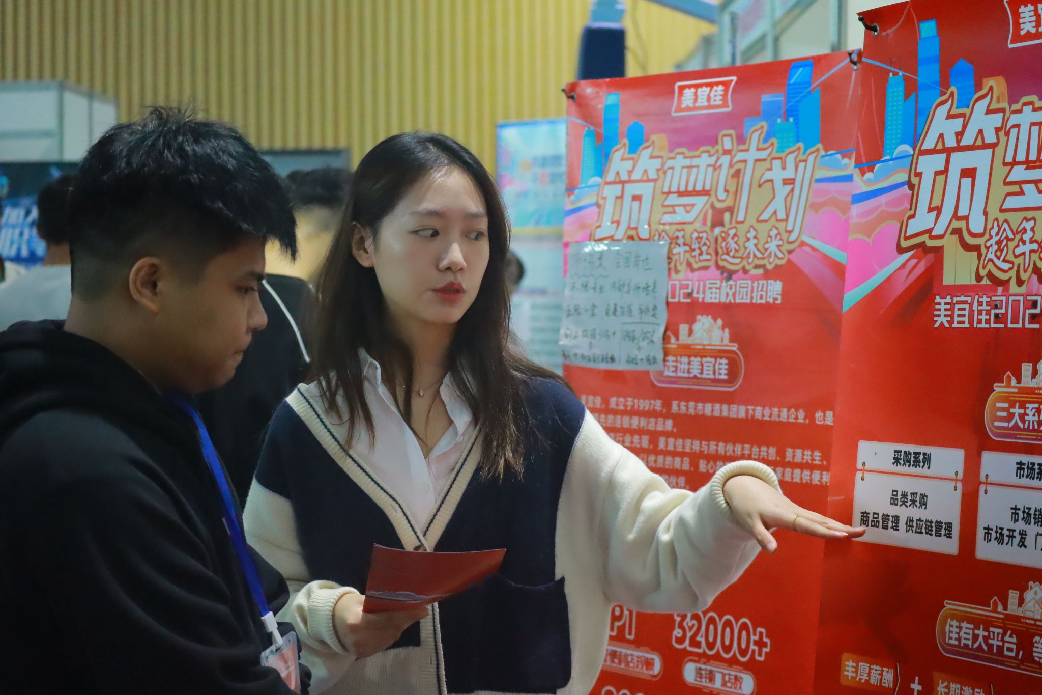 武科大网讯(见习记者宋钦 通讯员朱博文 周同江 摄影梁绮琪)10月24日,Beat365官网在黄家湖校区举办2023校友企业专场招聘会。本次招聘会以125周年校庆为契机,以“校友助成长 就业赢未来”为主题,吸引了187家校友企业及重点企业前来揽才,提供就业岗位13000余个。