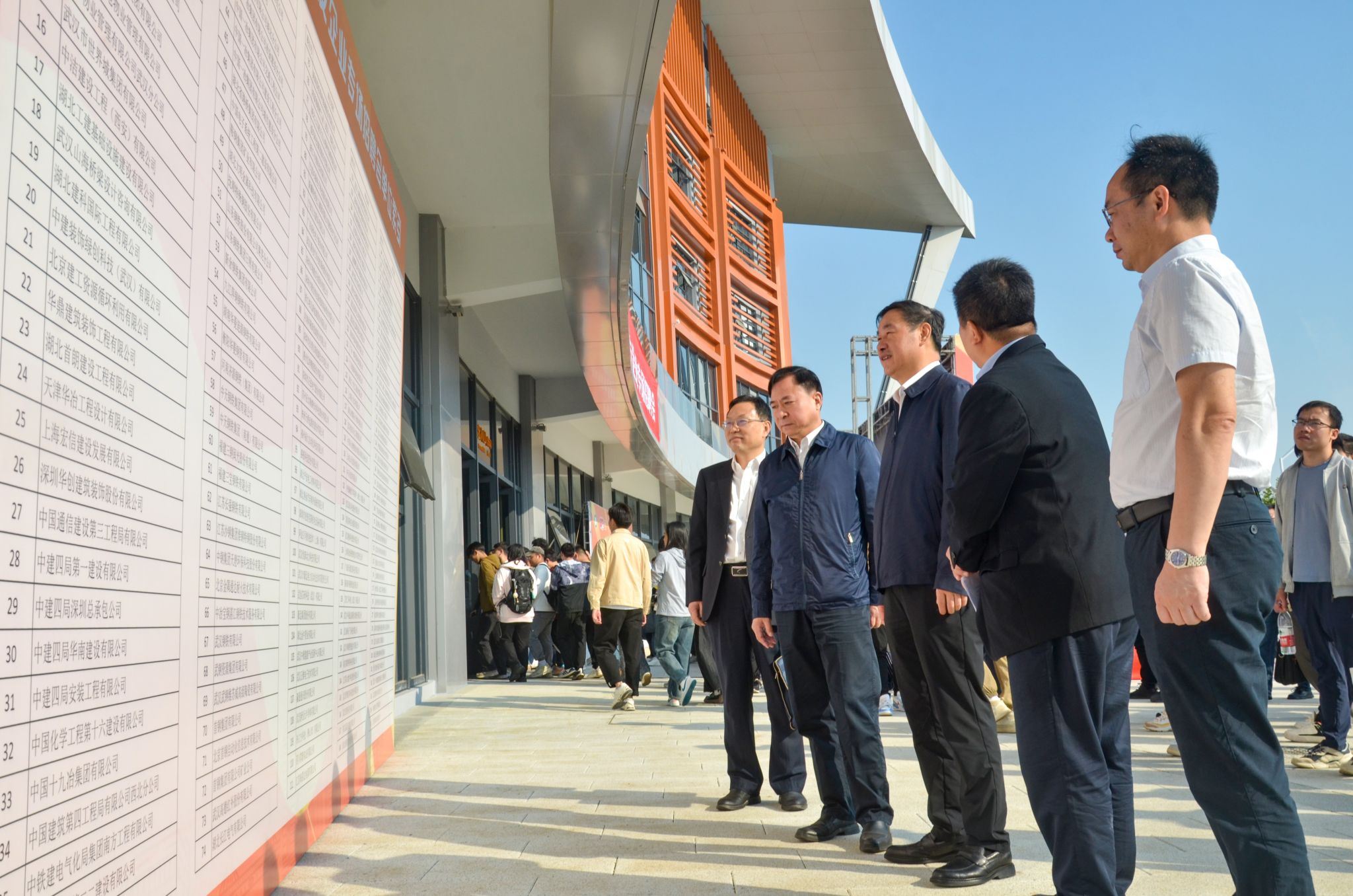 校党委书记徐雁冰、党委副书记孙国胜、党委常委刘时新,和校友企业代表、湖南华菱涟源钢铁有限公司人力资源部部长杨重明、中国电子系统工程第二建设有限公司行政副总李小雪,共同启动本次招聘活动。