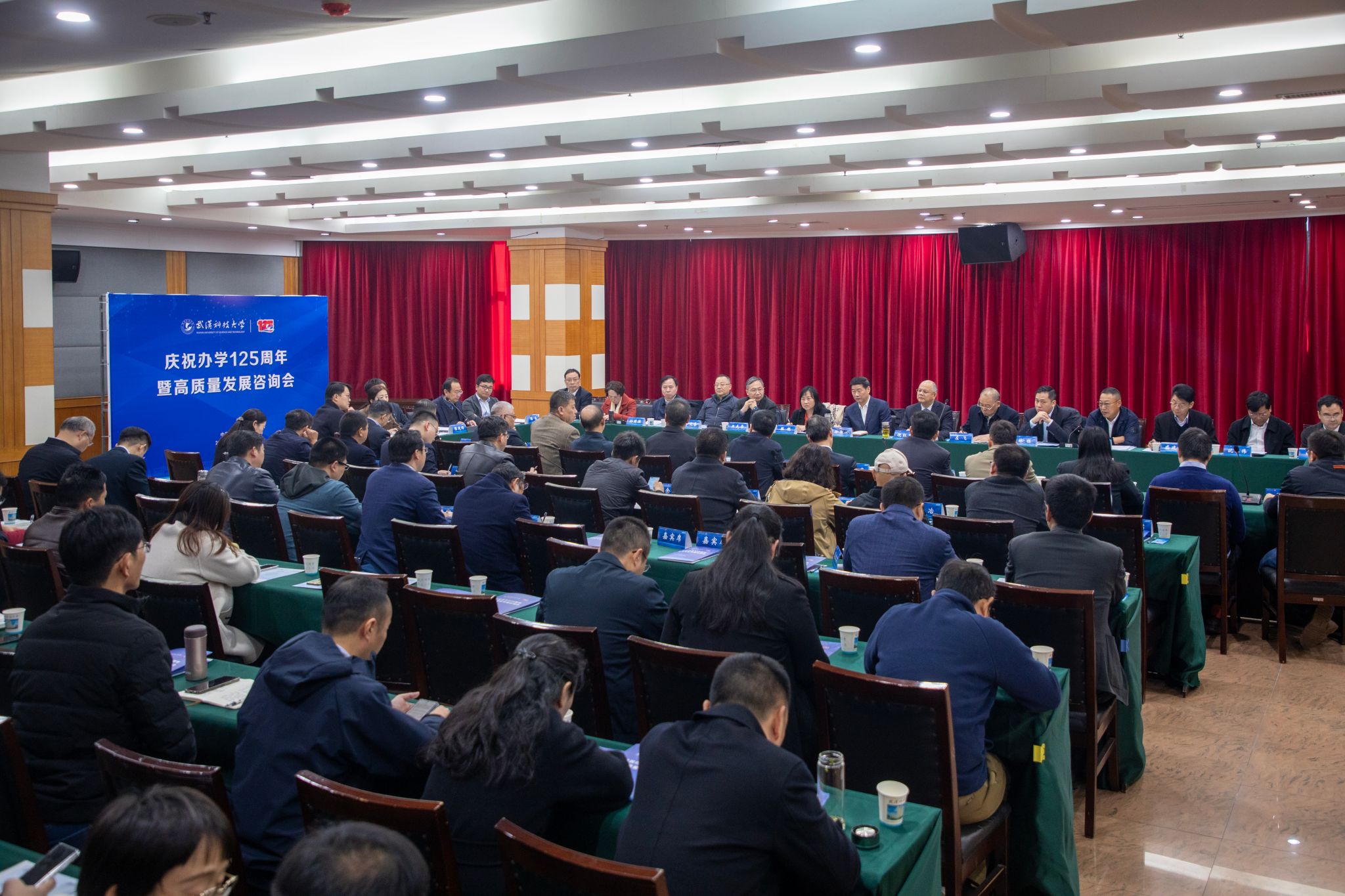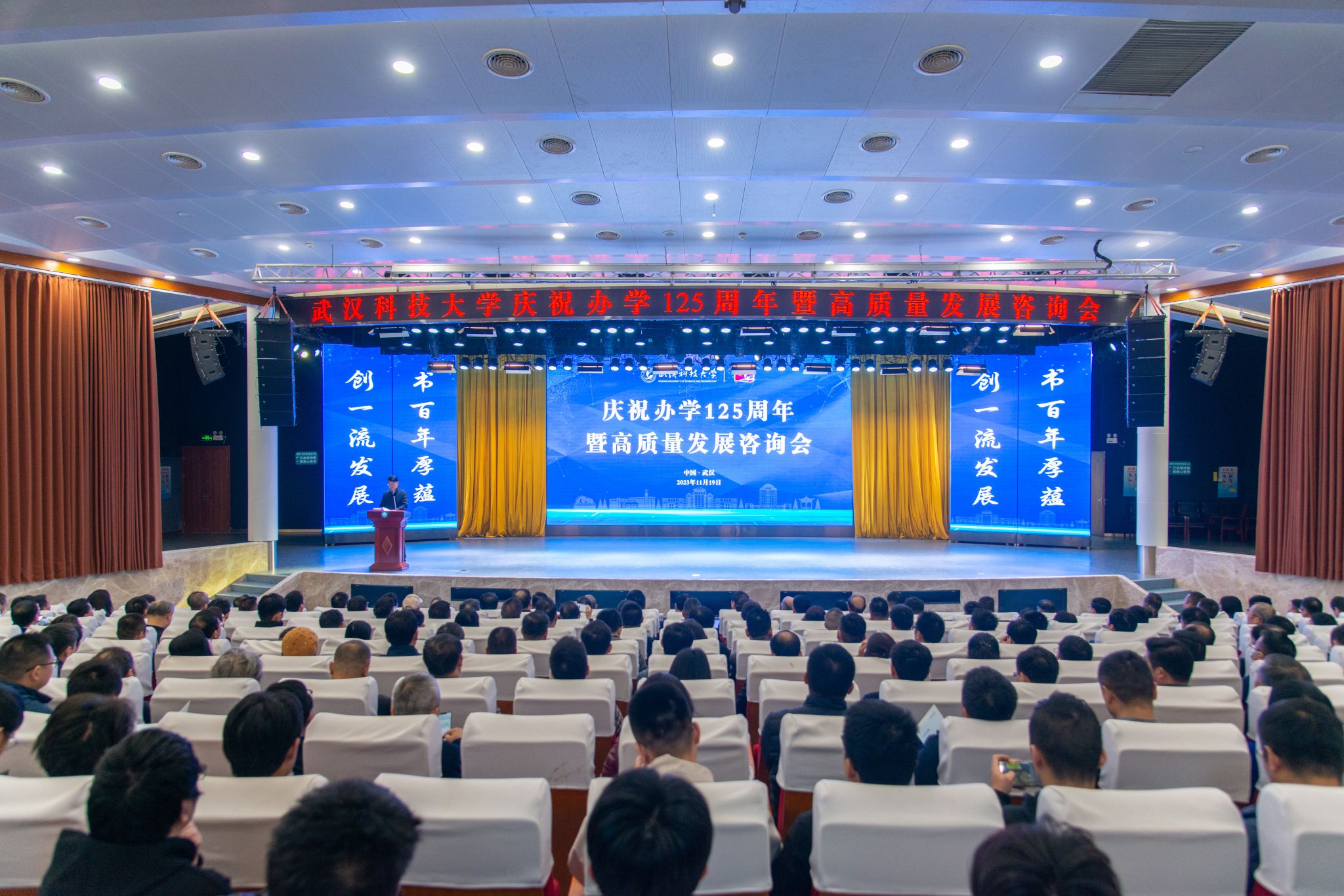 武科大网讯(记者陈孖川) 11月19日,学校在青山校区隆重举行庆祝办学125周年暨高质量发展咨询会。校党委书记徐雁冰、校长倪红卫等校领导班子成员,全国行业学会咨询专家、合作单位咨询专家、校友咨询专家、校内咨询专家和各地校友会代表、企事业单位领导以及学校全体副处级及以上领导干部、师生代表等400余人相聚一堂,总结学校办学成绩,共祝学校125华诞,共谋学校发展大计。