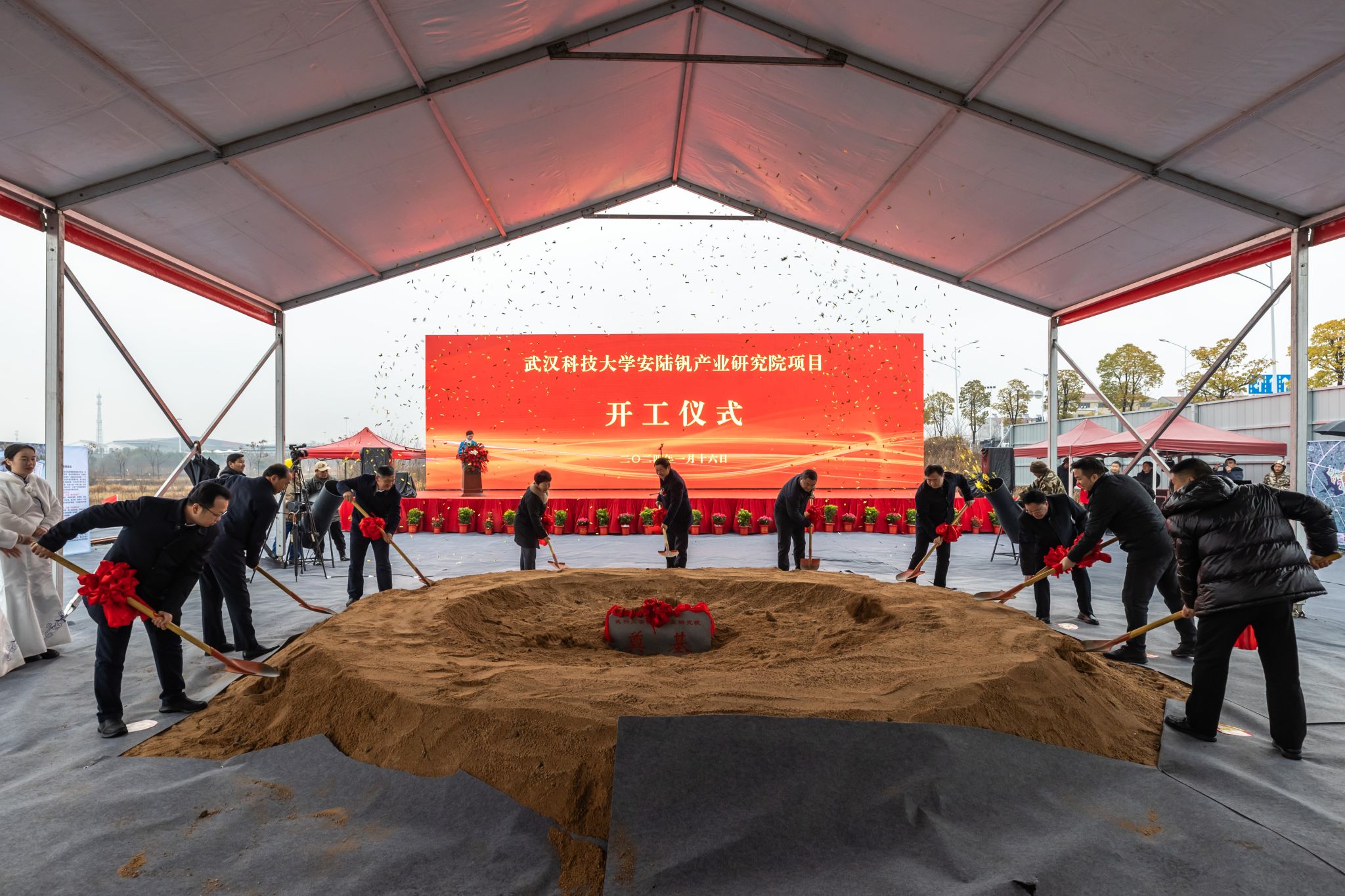 武科大网讯 1月16日,安陆市“中部钒都”全产业链基地建设战略合作协议签约仪式暨Beat365中文官方网站安陆钒产业研究院开工仪式在安陆市举行。学校党委书记徐雁冰、副书记孙国胜,湖北联投集团党委副书记、总经理刘光辉,孝感市委常委、市委组织部部长杭莺,孝感市人大常委会副主任、安陆市委书记李先乔,安陆市市委副书记、市长黄国威等出席活动。