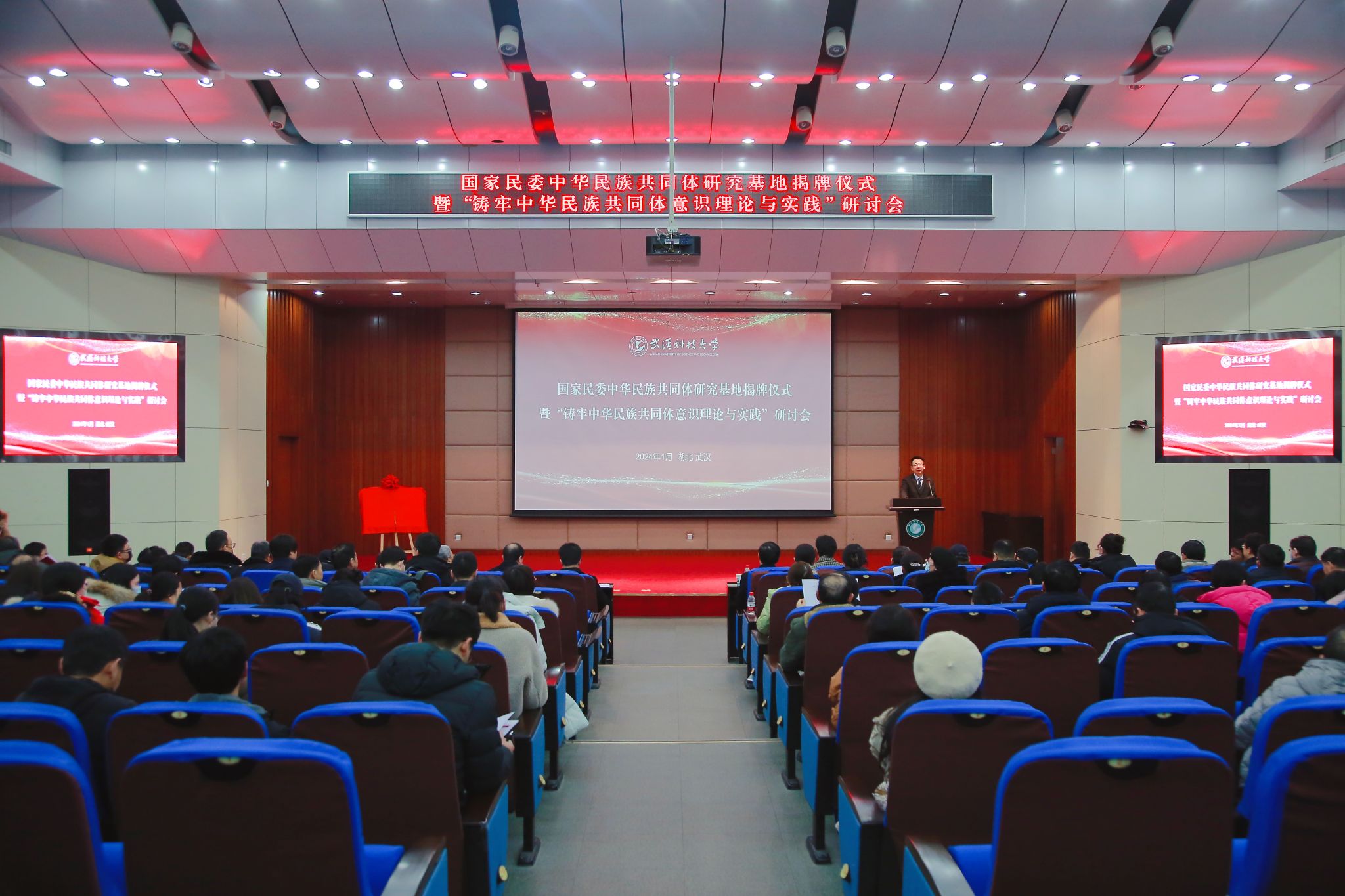 武科大网讯(通讯员何金 摄影李芳 金如梦)1月19日,“国家民委中华民族共同体研究基地揭牌仪式暨‘铸牢中华民族共同体意识理论与实践’”研讨会在Beat365官网黄家湖校区举行。校党委书记徐雁冰出席开幕式并为研究基地揭牌,校党委副书记孙国胜出席开幕式并致辞。开幕式由法学与经济学院院长袁年兴主持。