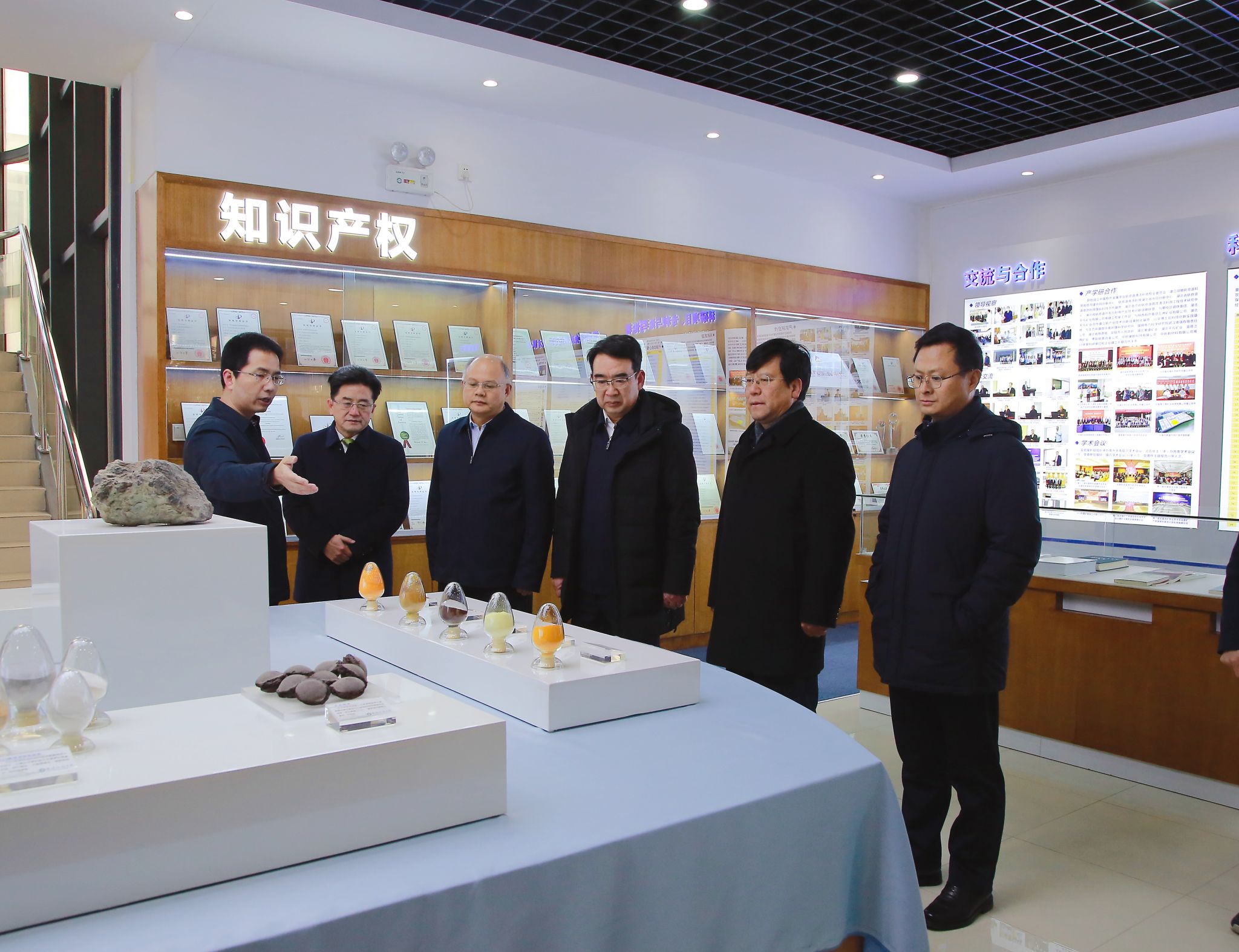 座谈会前,张文学一行在校长倪红卫、副校长沈季伟的陪同下,参观了冶金装备及其控制省部共建教育部重点实验室、省部共建耐火材料与冶金国家重点实验室、国家环境保护矿冶资源利用与污染控制重点实验室。