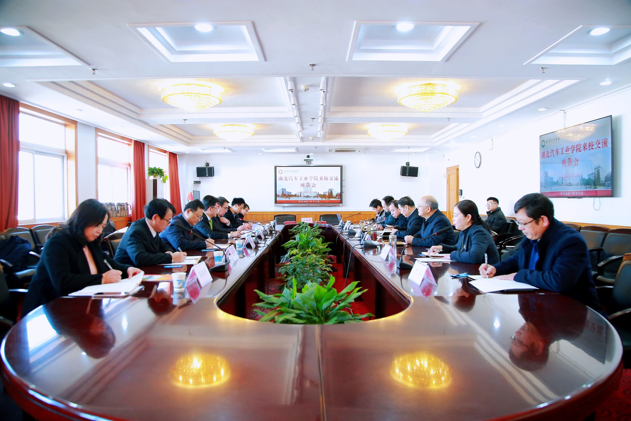 徐雁冰对张文学一行的来访表示欢迎,并介绍了学校办学历史以及近年来改革建设发展情况。徐雁冰指出,学校紧密围绕一流学科建设的奋斗目标,坚持高质量内涵式发展,人才培养特色持续彰显,高水平科研成果不断涌现,服务经济社会发展能力显著增强。湖北汽车工业学院行业特色鲜明,学科特色显著,发展态势良好。希望双方以此次签约为契机,进一步拓展合作领域,深化合作内涵,不断提升办学水平和服务地方建设发展能力。