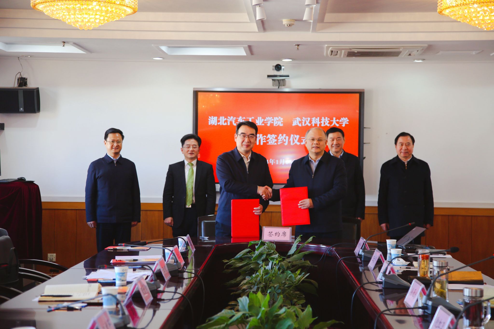 校长倪红卫和湖北汽车工业学院校长王晓签署了全面战略合作协议。