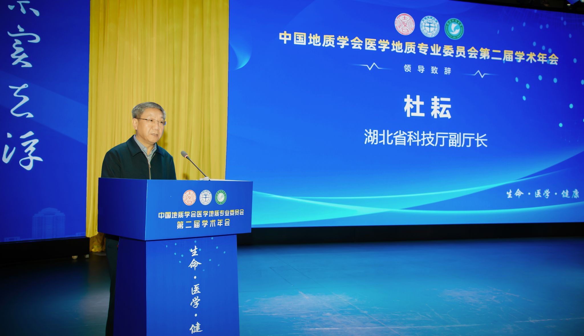 杜耘代表湖北省科技厅向年会的召开表示祝贺,近年来湖北省的整体科技创新能力有了很大提升,中国地质学会历经百余年的发展,始终砥砺初心使命,引领地质科技进步,服务经济社会发展。湖北省科技厅将进一步加强与中国地质学会各专业委员会之间的联系与合作,进一步推动医学地质学相关研究应用在湖北开花结果,衷心希望各位专家学者能够充分利用本次学术年会的平台,深入交流学术思想,分享最新研究成果,共谋发展大计。