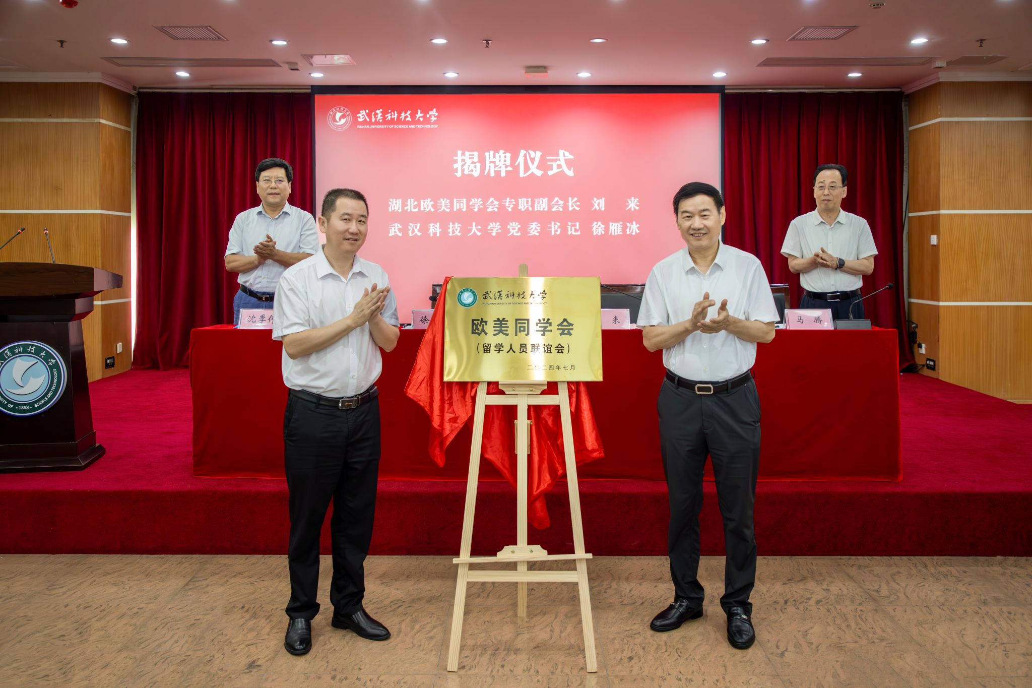 徐雁冰和刘来为学校欧美同学会(留学人员联谊会)揭牌。
