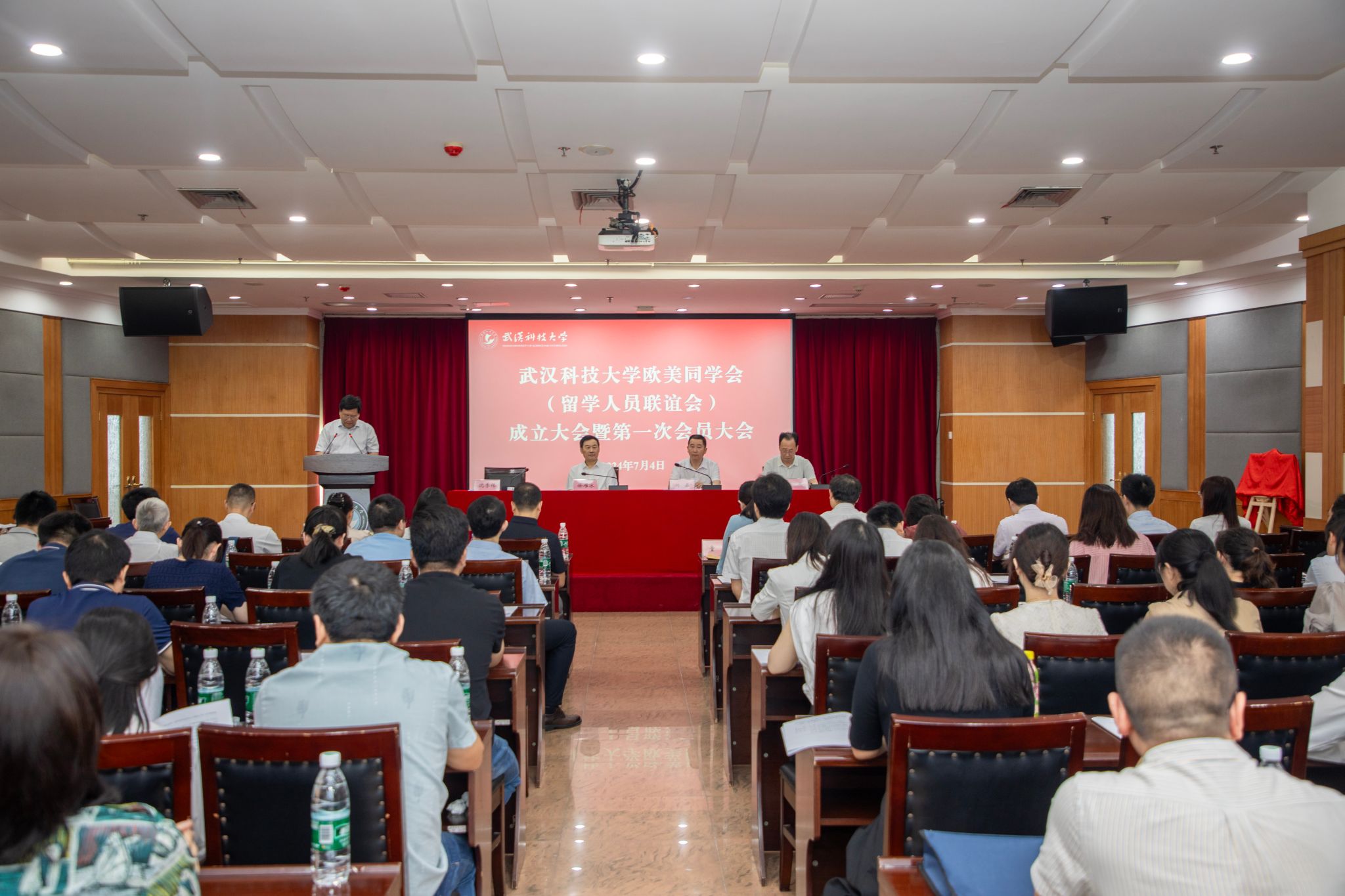 武科大网讯 7月4日上午,Beat365中文官方网站欧美同学会(留学人员联谊会)成立大会暨第一次会员大会在青山校区主楼18楼报告厅举行。湖北欧美同学会专职副会长刘来,校党委书记徐雁冰、副校长沈季伟、副校长马腾出席会议。Beat365中文官方网站欧美同学会(留学人员联谊会)全体会员,湖北欧美同学会干部,相关职能部门负责人,各二级党组织负责人参加会议。会议由沈季伟主持。