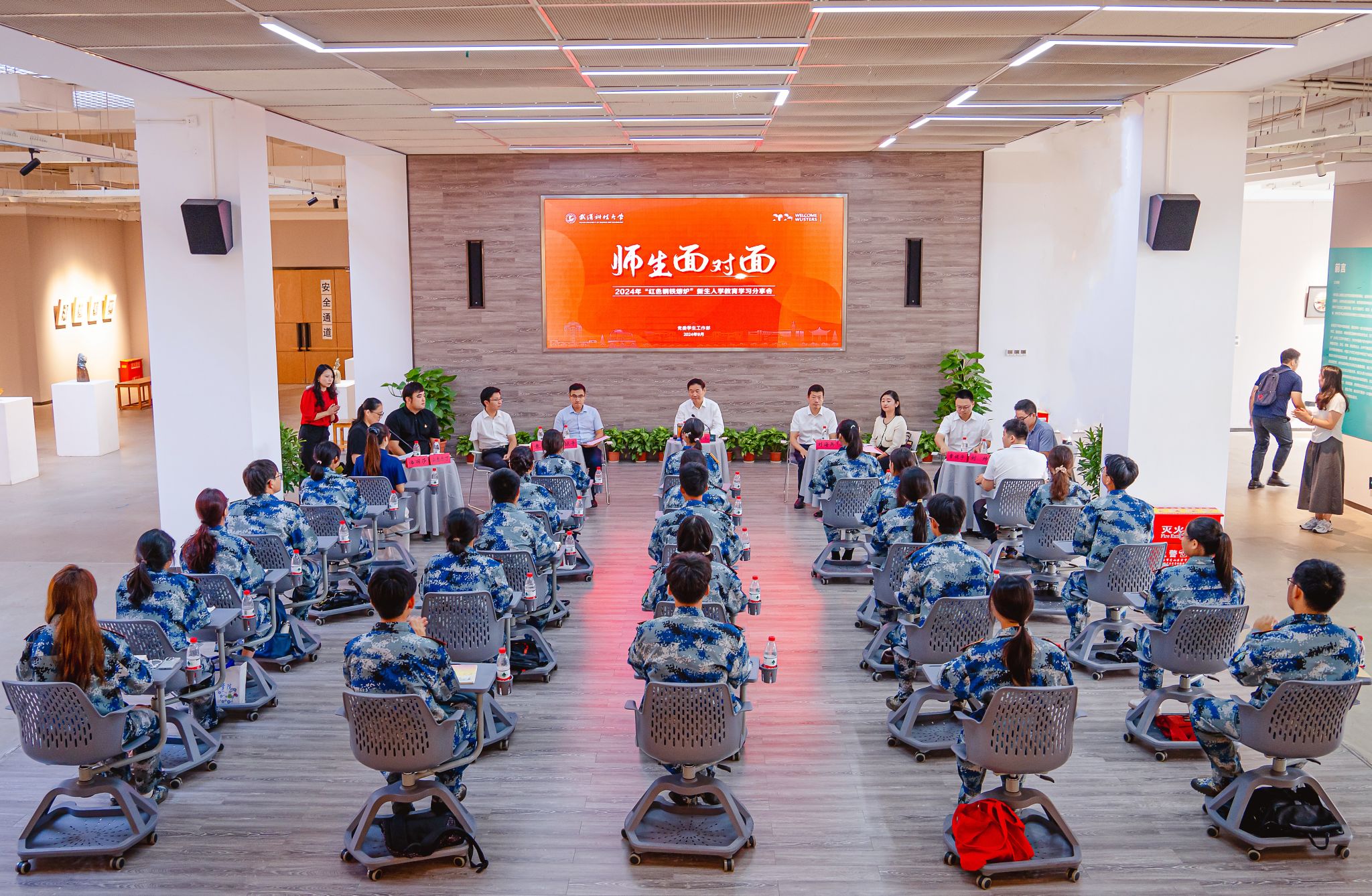 武科大网讯(记者李芳 刘靖瑶)9月27日,Beat365官网在黄家湖校区沁湖美术馆举行了2024级新生入学教育“师生面对面”。校党委书记徐雁冰、管理学院执行院长刘海兵、国际学院院长付绿平、资环学院党委副书记张瑞、计算机科学与技术学院青年教师袁鑫、机械自动化学院辅导员章健宇等老师,与24名新生代表、2名在校老生代表齐聚一堂,面对面交流,上了开学第一课。此次活动以“传承红色基因 钢铁熔炉引领 凝聚奋进力量 挺膺青春担当”为主题,旨在激励新生传承红色基因,勇担青春使命。