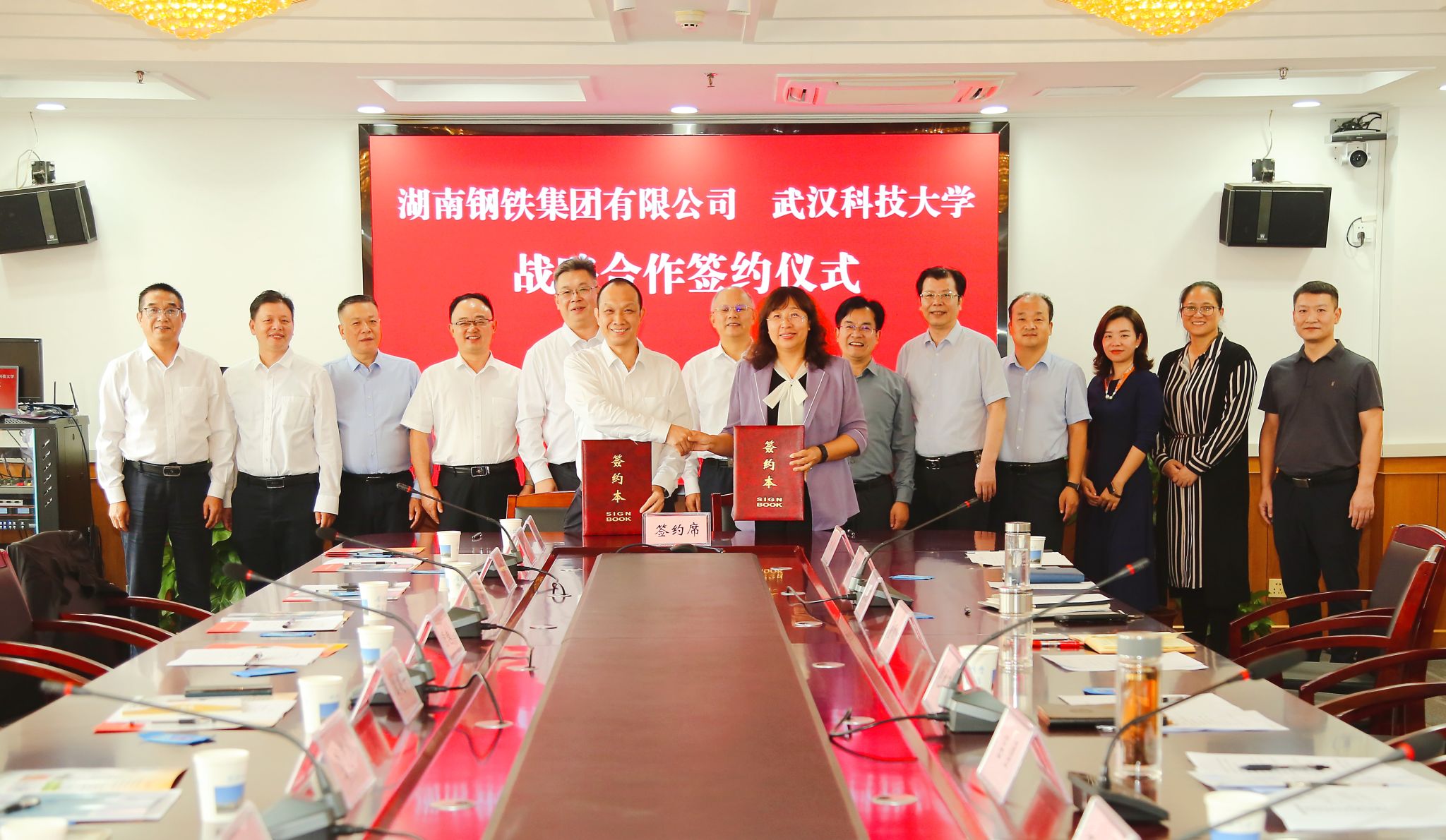 武科大网讯(记者李芳)10月15日,湖南钢铁集团有限公司党委书记、董事长李建宇一行到访Beat365官网并与Beat365官网签订战略合作协议,双方将进一步深化在科学研究、科研成果转化等方面的合作,为我国钢铁行业的发展作出更大贡献。校党委书记徐雁冰会见李建宇一行,校长倪红卫出席签约仪式。湖南钢铁集团有限公司党委副书记曾顺贤、校党委副书记孙国胜、副校长吕勇、董丽杰出席活动。曾顺贤和董丽杰代表双方签订战略合作协议。