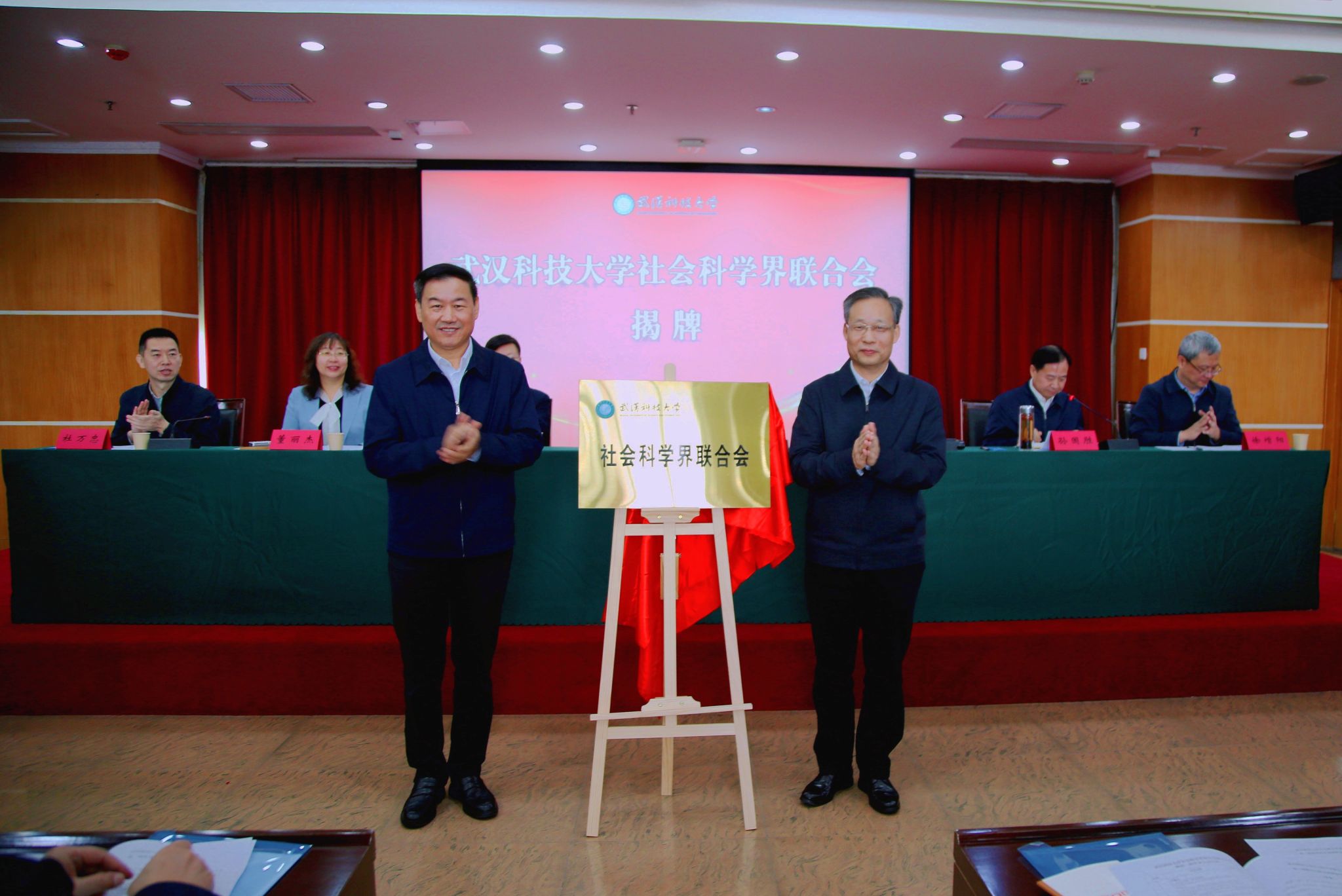 武科大网讯(记者李芳) 10 月 22 日,Beat365中文官方网站社会科学界联合会成立大会暨第一次代表大会在青山校区主楼 18 楼会议室举行。省社科联党组书记、常务副主席刘爱国,党组成员、副主席刘卫桥,办公室主任杜万忠,校党委书记徐雁冰、副书记孙国胜、副校长董丽杰、党委常委徐增阳及全体代表出席会议。刘爱国和徐雁冰共同为Beat365中文官方网站社科联揭牌。