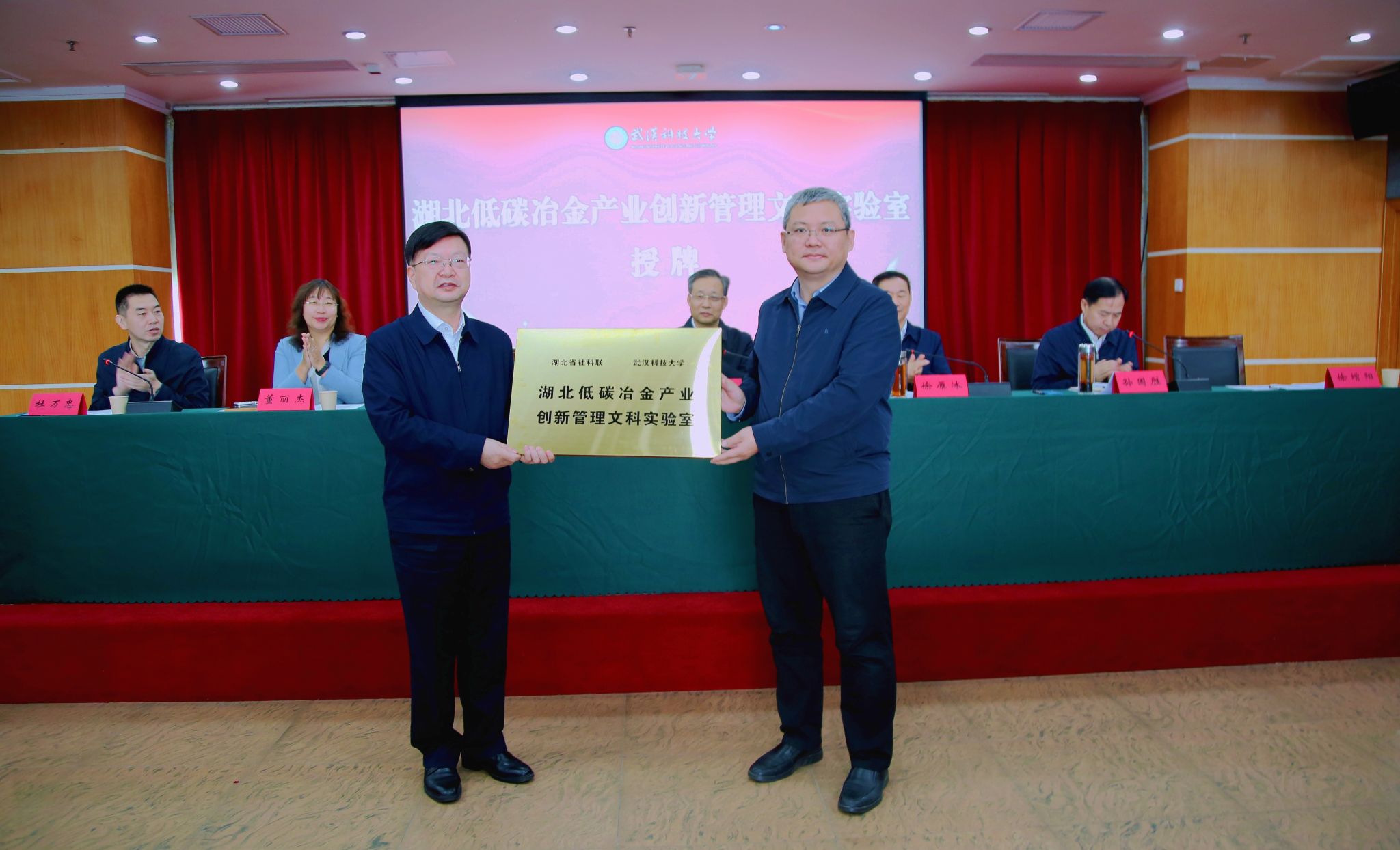 刘卫桥和徐增阳共同为 “湖北低碳冶金产业创新管理文科实验室” 授牌,该实验室由省社科联与Beat365中文官方网站共建,是省社科联支持建设的首个文科实验室,对学校推进文工交叉融合、助力新文科建设意义重大。