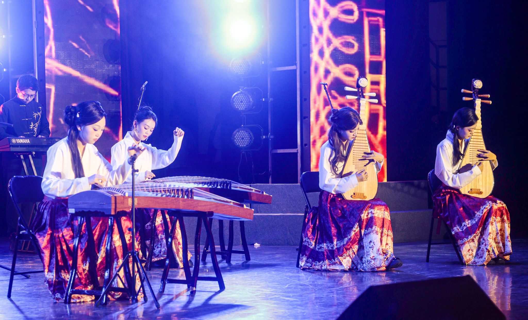 穿越时空,古今对话。城市建设学院学子们用舞台剧还原新中国成立前的苦难荣光,在今朝与往昔的对比问答中,赓续青春一脉相承的使命担当。“今天的盛世如你所愿!”背景视频里,新时代城建学子深入乡村精密勘测,推动校友郑位三故居陈列布展落地。接着,师生们弹起古筝,拉起小提琴,一同歌唱重新填词改编的《萱草花》,展现生长在国旗下的青年与革命先辈的对话,用手势舞表达对学院学校、党和国家的礼赞。