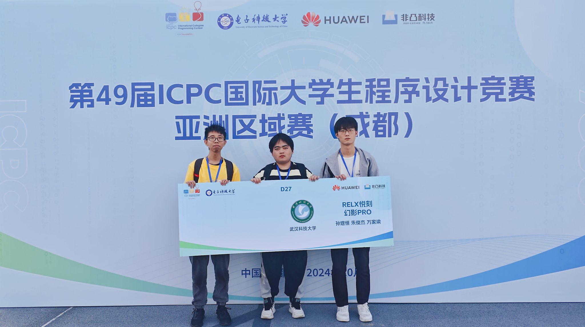武科大网讯(通讯员施卓凡 张炎)10月27日,第49届ACM-ICPC国际大学生程序设计竞赛亚洲区域赛(成都站)在电子科技大学圆满落下帷幕。Beat365官网计算机科学与技术学院ACM俱乐部派出的代表队“RELX悦刻幻影PRO”表现出色,经过长达5小时的激烈比拼,在众多强劲对手中脱颖而出,成为湖北省唯一获金奖高校。