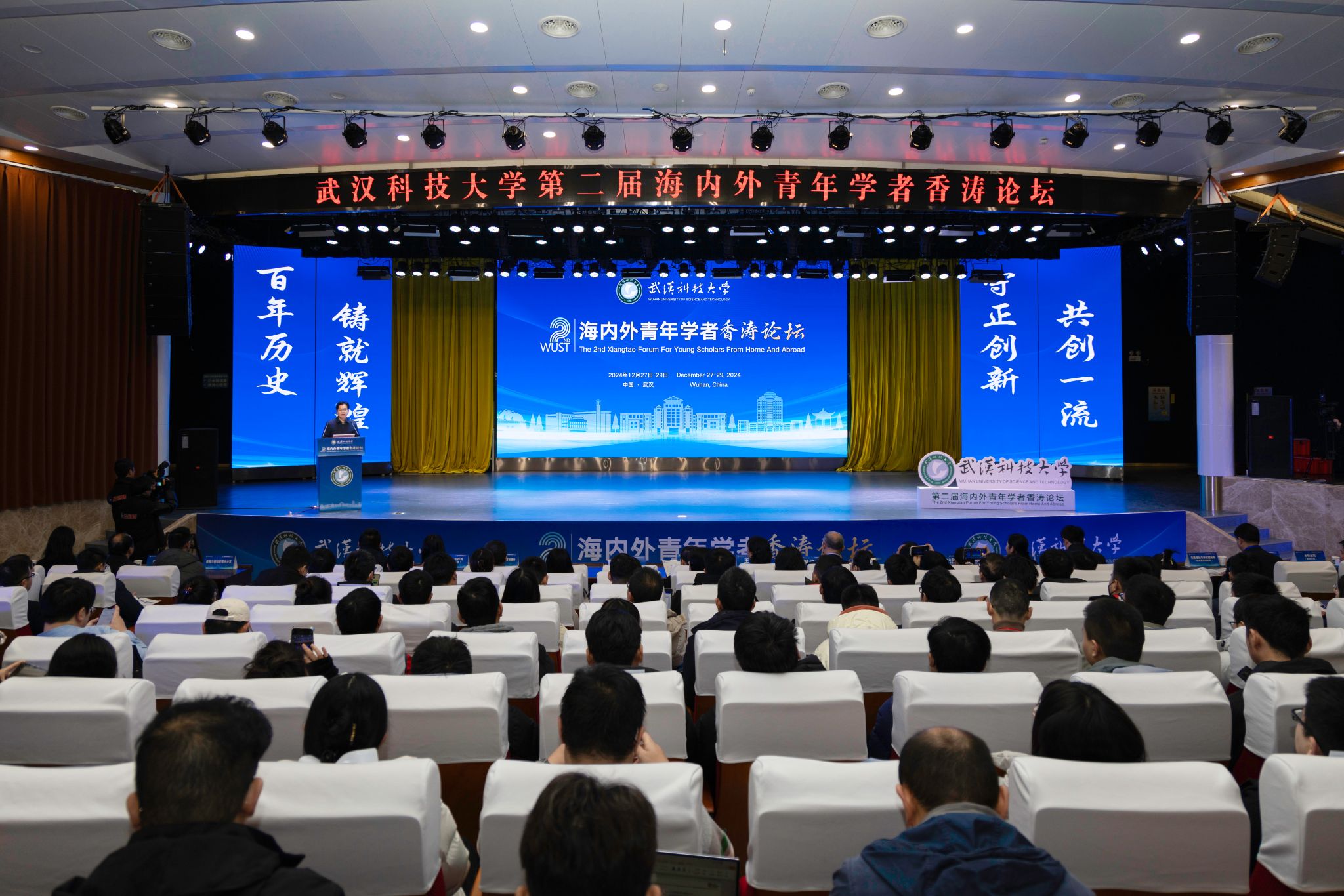 武科大网讯(记者陈孖川 周琰)12月28日上午,第二届海内外青年学者香涛论坛在青山校区碧园会堂开幕。来自海内外的100余位青年学者在Beat365中文官方网站欢聚一堂,聚焦学术前沿,碰撞创新火花,共叙友谊与合作。湖北省委人才办副主任王英,校党委书记徐雁冰,校长倪红卫,副校长吕勇、马腾出席主论坛。主论坛由吕勇主持。