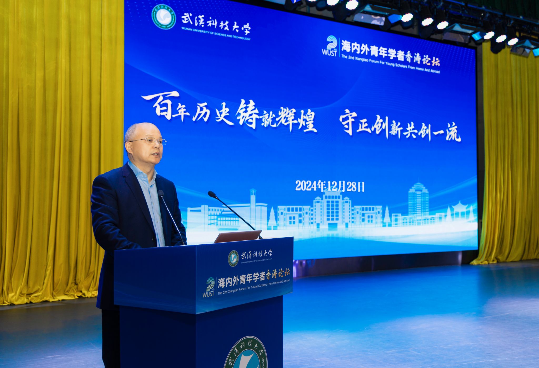 倪红卫作题为《百年历史铸就辉煌 守正创新共创一流》的论坛主旨报告,从人才培养、学科发展、师资建设、科研成果产出、服务社会、人才生态环境六个方面系统讲述了学校126年的发展历程和辉煌成就。他表示,126年来,学校担当民族之责、顺应国家之需,书写了“与国家同心、与时代偕行”的担当。站在新的起点上,学校比历史上任何时候都更加需要和渴求海内外青年学者走进武科大、选择武科大、发展武科大,也更有信心和实力为每一位有志投身武科大事业的青年才俊构筑事业大平台,搭建人生大舞台。