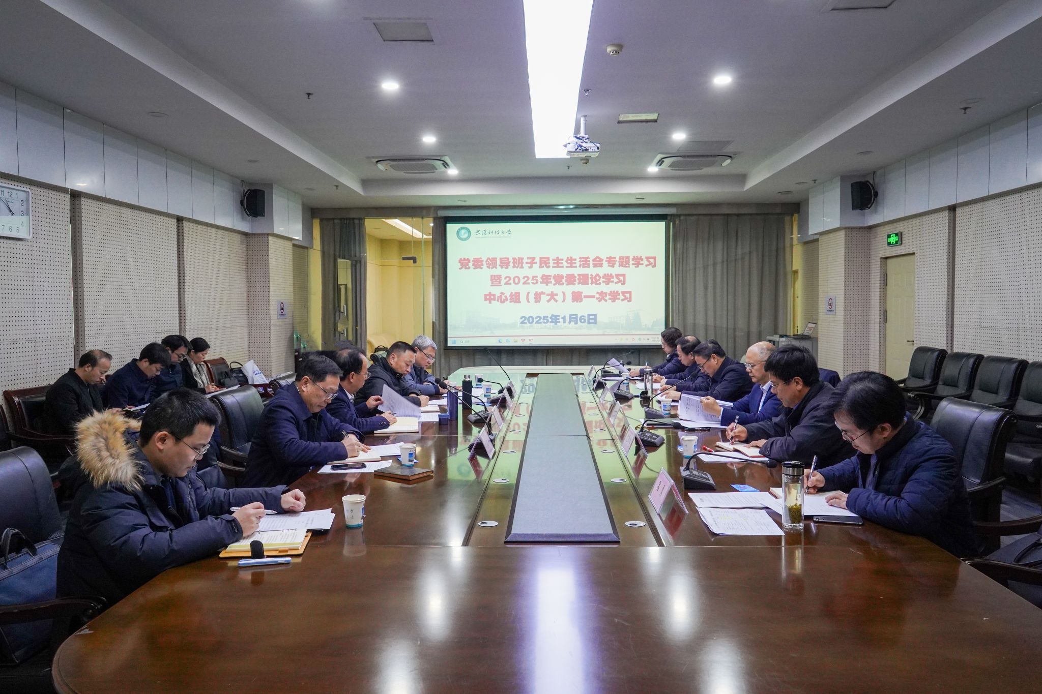 武科大网讯 按照党中央关于开好民主生活会的部署和省委有关要求,1月6日,学校党委理论学习中心组开展民主生活会专题理论学习暨2025年第一次集体(扩大)学习。党委书记徐雁冰主持学习会议并讲话。党委副书记、校长倪红卫和全体在校校领导参加学习。