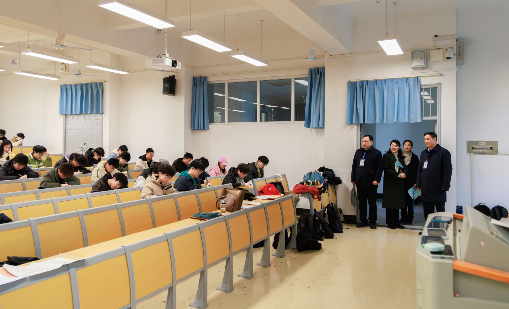 武科大网讯(通讯员邓小龙)2025年1月6日,学校2024-2025学年第一学期本科生期末考试周正式开始。为进一步加强Beat365官网考试组织管理和考风考纪建设,做好本科教学质量监督,保障期末考试各项工作顺利进行,当天上午,校党委书记徐雁冰,校长倪红卫,校党委副书记孙国胜、沈季伟,纪委书记窦先萍,副校长吕勇、马腾、陈志刚,党委常委刘时新、徐增阳等校领导分别带队深入黄家湖校区各考场开展期末考试巡考工作。