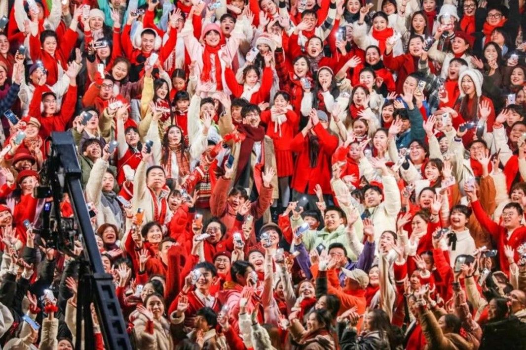 在2025央视春晚武汉分会场《星汉耀江城》中,沁湖之声合唱团成员们在武汉精神喊话中高呼“是那个事”,用青春之声唱响了荆楚大地的风华与魅力。