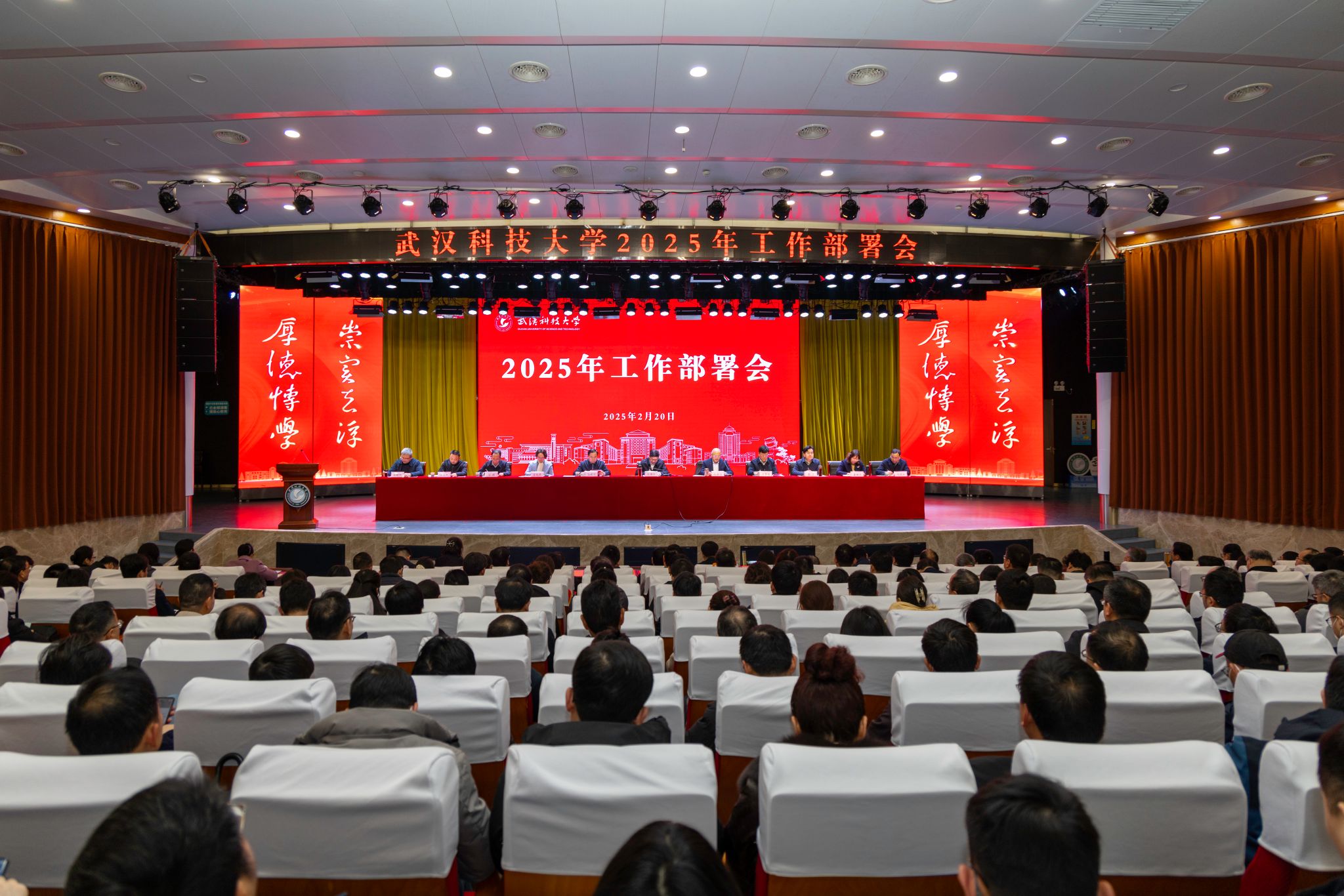 武科大网讯 2月20日,学校2025年工作部署会在青山校区碧园会堂召开。校党委书记徐雁冰讲话,校长倪红卫部署工作,校党委副书记孙国胜宣读表彰决定。会议由校党委副书记沈季伟主持。