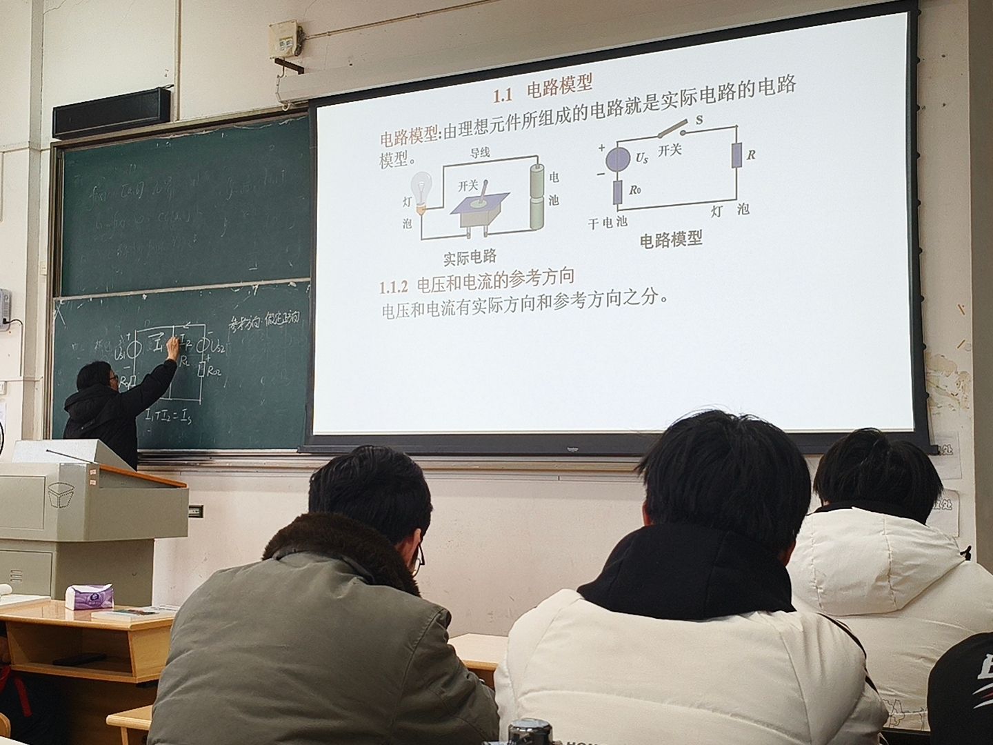 “关联与非关联参考方向”“电流源”“电压源”“电源开路”……一个个新名词、新符号接连抛出。“电工这门课与中学所学的概念有许多不同!”在主楼13306教室,教师柳利军在课堂伊始友善地提醒学生,并指着PPT上的电路图讲解道:“比如,当电流的参考方向由电压的低电位流向高电位时,就是非关联参考方向。此时,计算电压、功率等公式都需要带一个负号。”智能制造23级的小肖听完课后感慨道:“计算电压居然会带负号!柳老师每次微笑着强调一个定义,都让我们感受到知识的魅力,激发了我学习的热情。”
