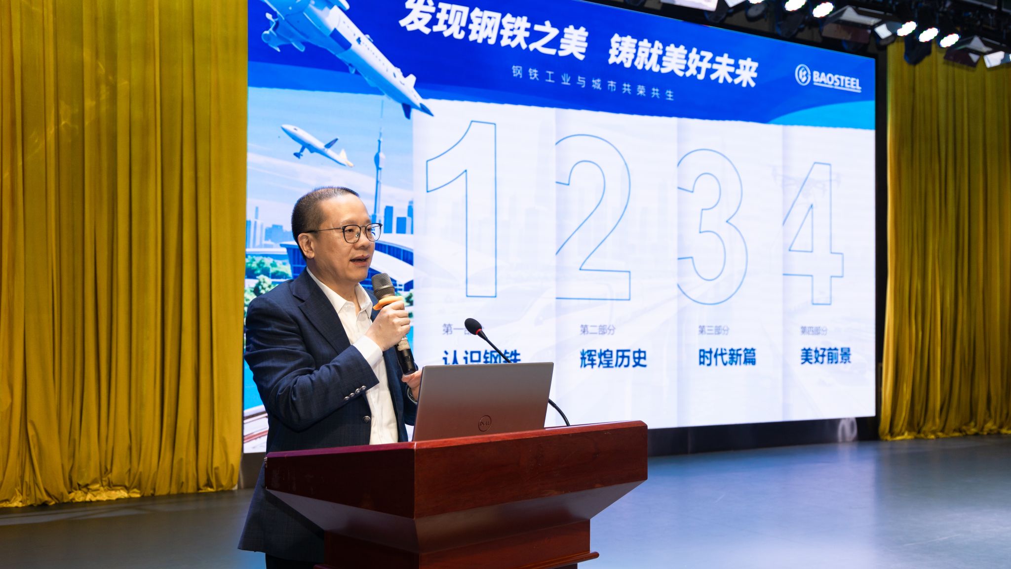 彭俊以《发现钢铁之美 铸就美好未来》为题,从认识钢铁、辉煌历史、时代新篇、美好前景四个方面,分享了低碳冶金材料产业发展前沿现状和未来的发展方向。