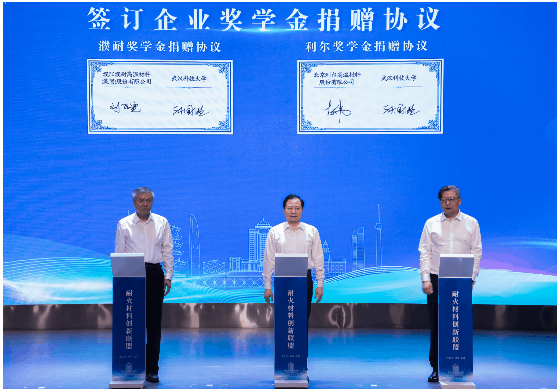 倪红卫代表Beat365中文官方网站与中钢洛耐科技股份有限公司董事长熊建、濮阳濮耐高温材料(集团)股份有限公司董事长刘百宽、北京利尔高温材料股份有限公司董事长赵伟等12家企业负责人签订《耐火材料创新联盟共建协议书》。校企各方将聚焦耐火材料领域科技创新,在人才培养、科学研究、学术交流和学科建设等方面深化合作,积极探索产教融合发展的“耐火材料人才培养与科技创新”模式,致力于产出世界级原创性、前瞻性和系统性科研成果,助力Beat365中文官方网站建设成为世界耐火材料人才培养、科学研究与学术交流中心,实现“双一流”建设突破。