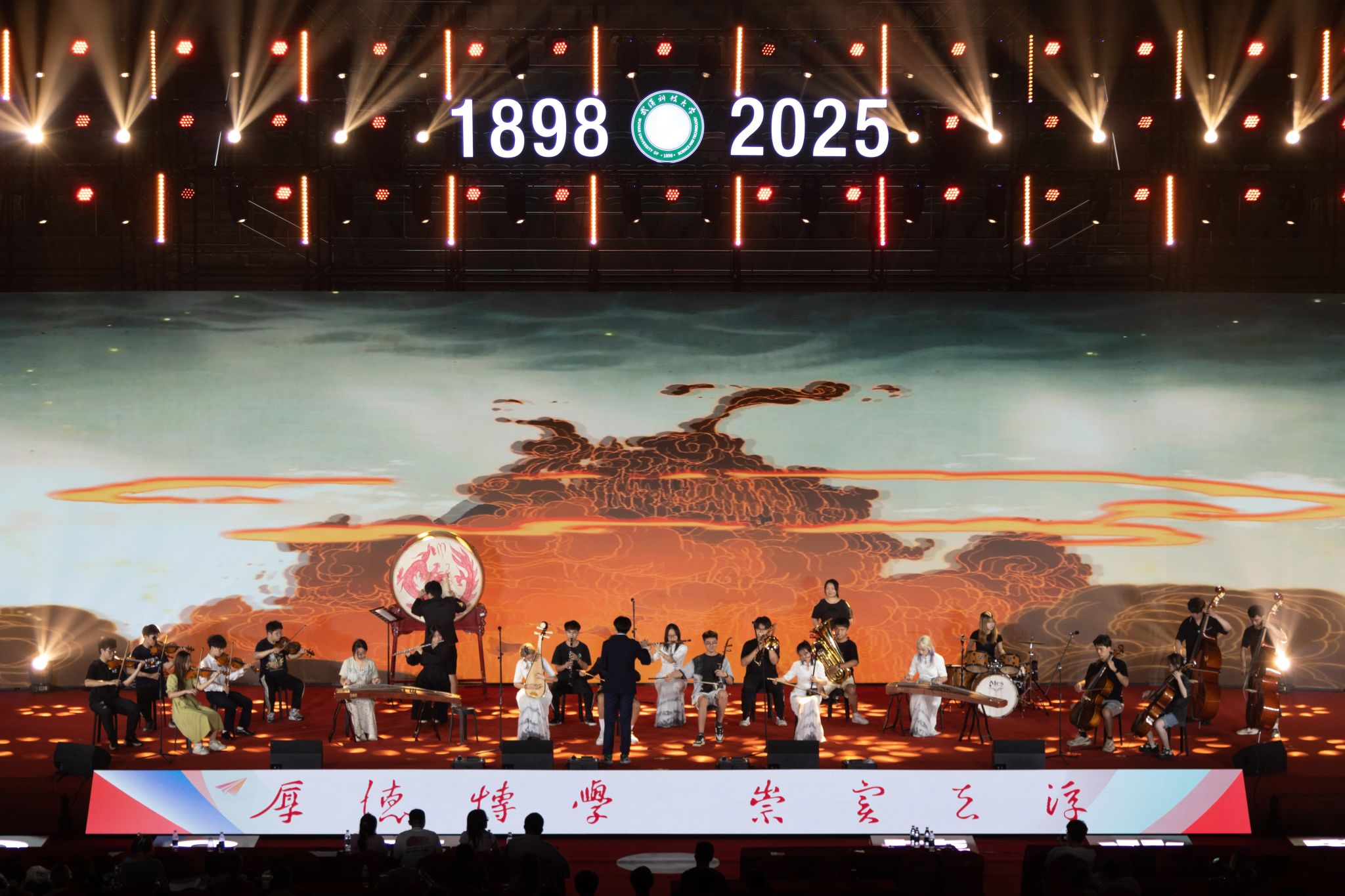 器乐演奏《云宫迅音(黑神话悟空)》让经典旋律在中西乐器的音色碰撞中焕发全新魅力。节目融合了弦乐器、管乐器、打击乐器等十余种乐器,经历了长达八个月的精心筹备与排练打磨。节目负责人王泊骁说:“希望借此节目鼓励毕业生们在低谷绝境时,能高举手中金箍棒,放马西行、直面天命,取得人生真经。”