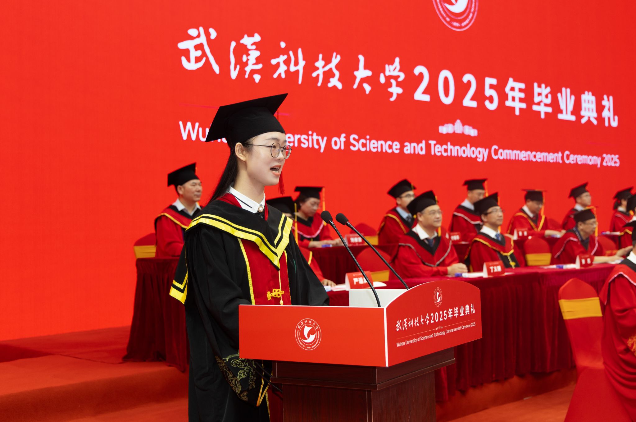 校长倪红卫以“与时偕行 力新致远”为题,为毕业生送上临别寄语。“‘力新’源自沁湖文化‘向上向美、力行力新’,意为‘力求创新、革故鼎新’,根植于武科大“钢铁品质”的沃土。”倪红卫说,从张之洞创办工艺学堂开启实业教育先河,到新中国成立后一代代武科大学人为新中国钢铁工业发展壮大作出巨大贡献,再到近年19项国家科技奖、耐火材料学科世界“单项冠军”的成就,武科大始终以创新引领发展。