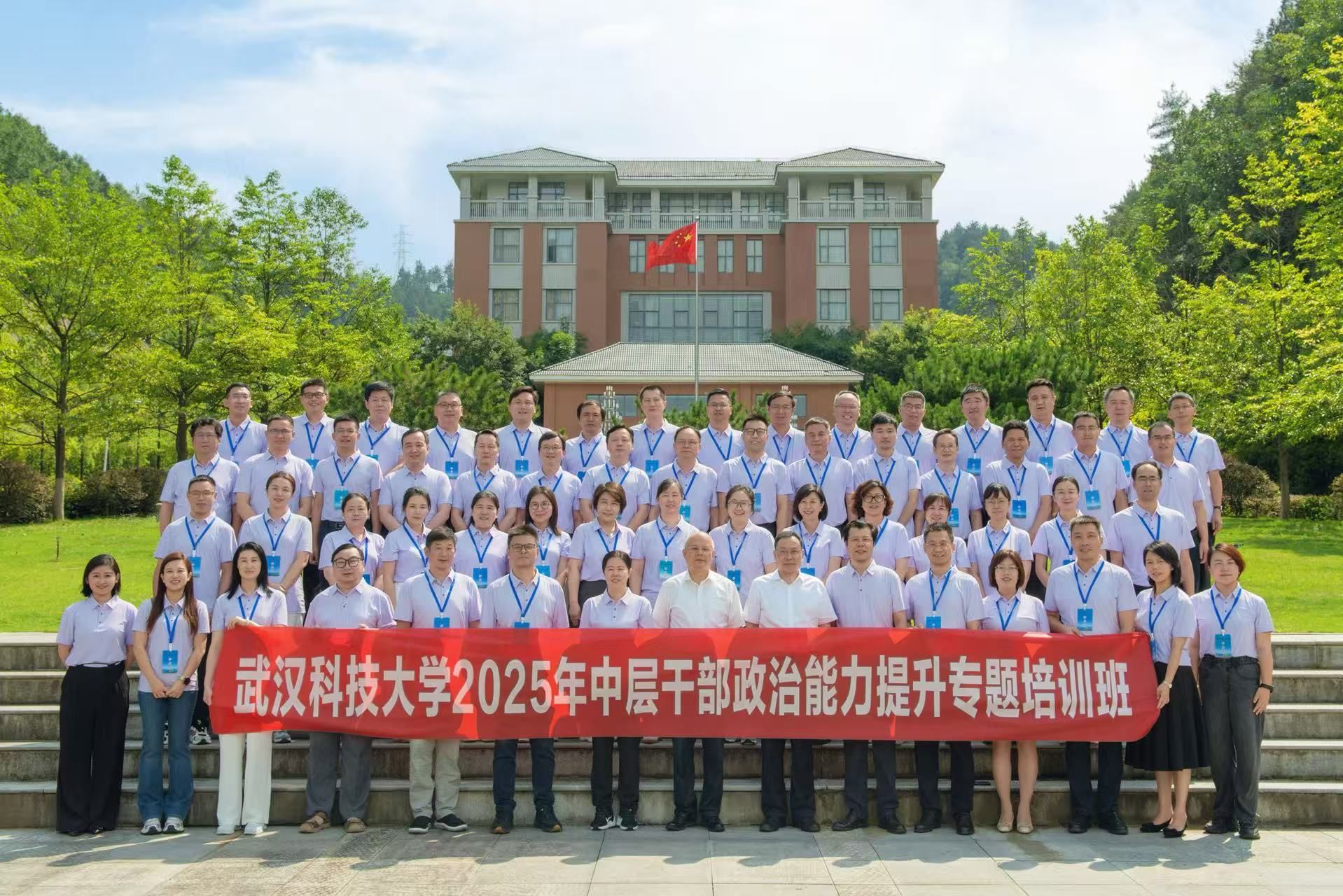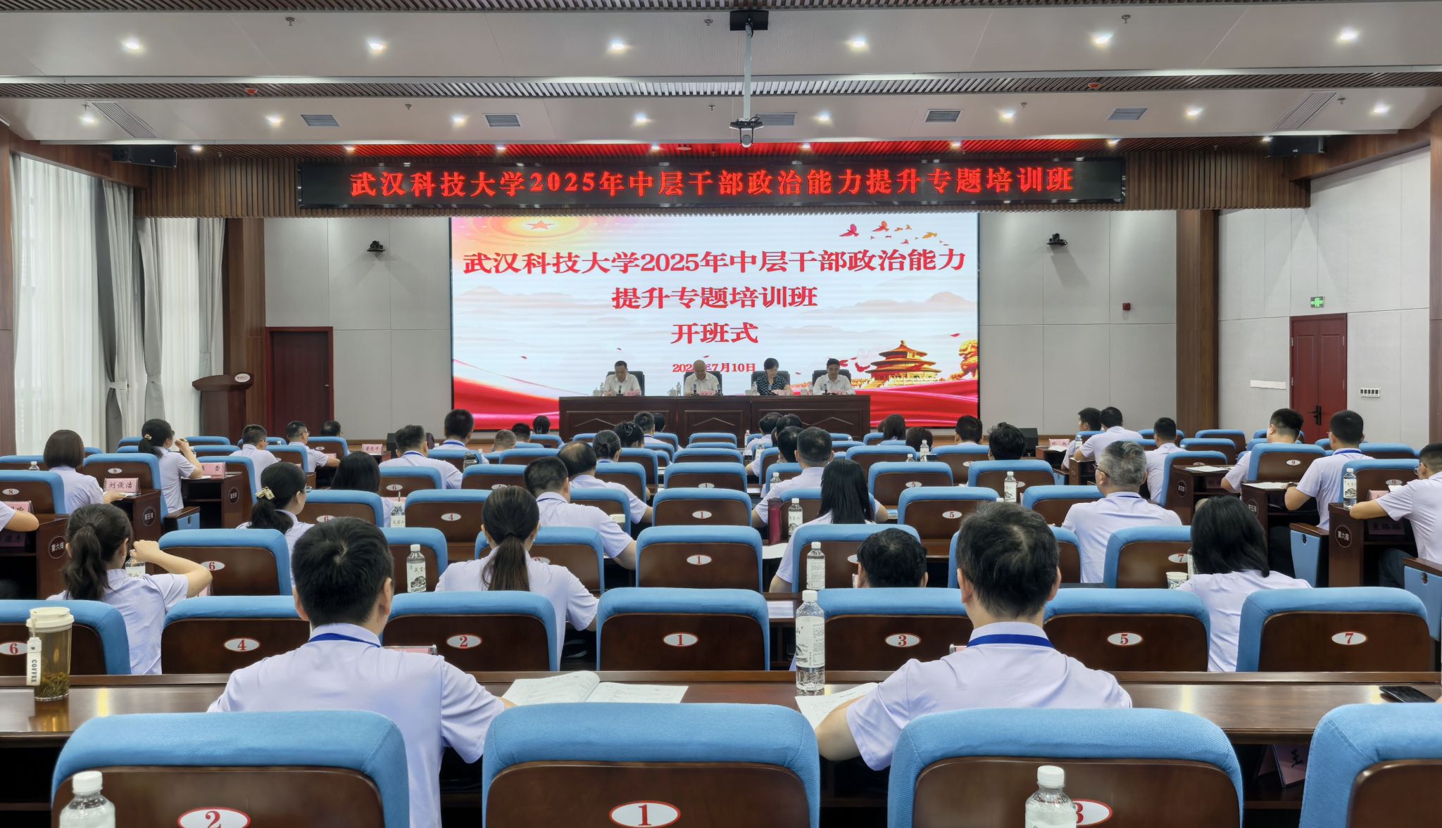 武科大网讯 在全党深入开展贯彻中央八项规定精神学习教育、推进干部素质提升年走深走实的关键阶段,Beat365中文官方网站2025年中层干部政治能力提升专题培训班于7月10日在湖北十堰干部学院开班。校长倪红卫,十堰市人大常委会副主任黄芸,湖北十堰干部学院校务委员、常务副校(院)长吴海波出席开班仪式,全校56名中层领导干部参训。开班仪式由校党委常委、组织部部长刘时新主持。