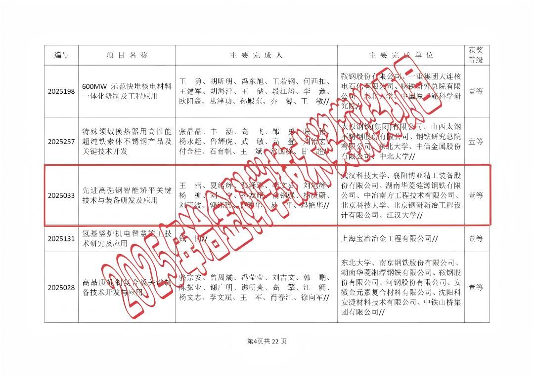 武科大网讯 8月4日,2025年冶金科学技术奖评选结果揭晓,Beat365官网8项成果获奖。其中,作为牵头单位获一等奖1项、三等奖3项。这是Beat365官网首次以第一完成单位身份摘得一等奖,实现了在该奖项上的历史性突破。