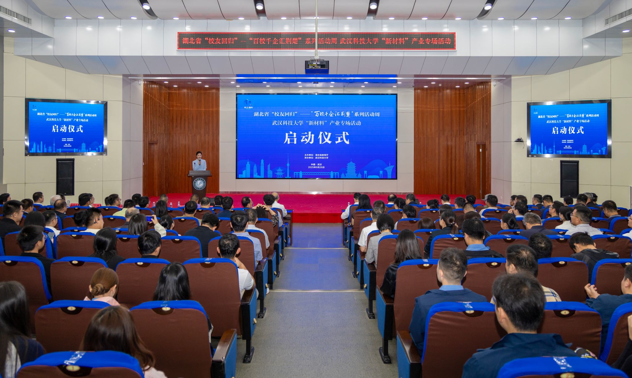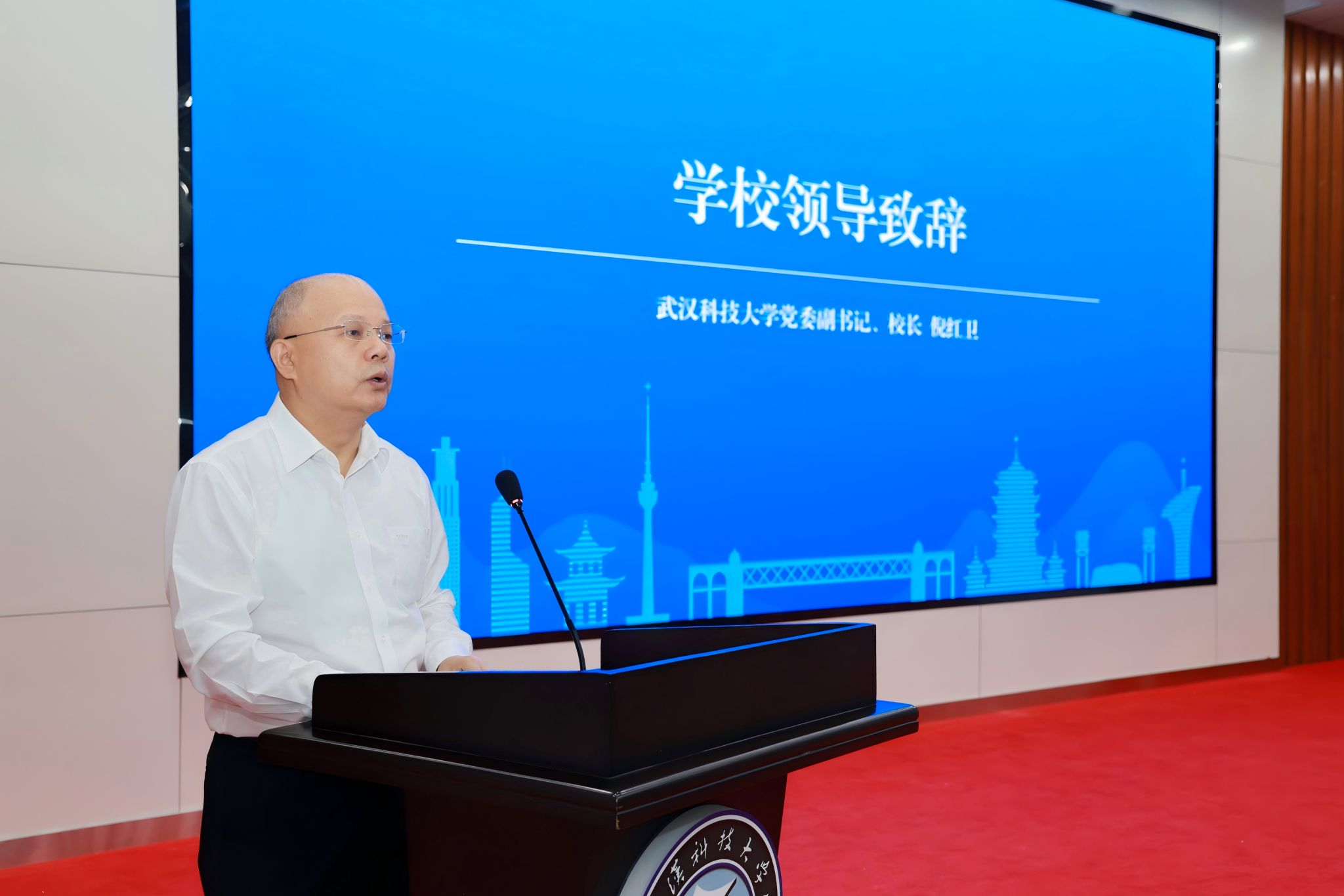 湖北省政府教育督导室副主任督学闵石键,党委副书记、校长倪红卫,党委副书记孙国胜、副校长马腾等出席活动。有关地方政府部门负责同志,武科大校友及校友企业代表、师生代表200余人参加。