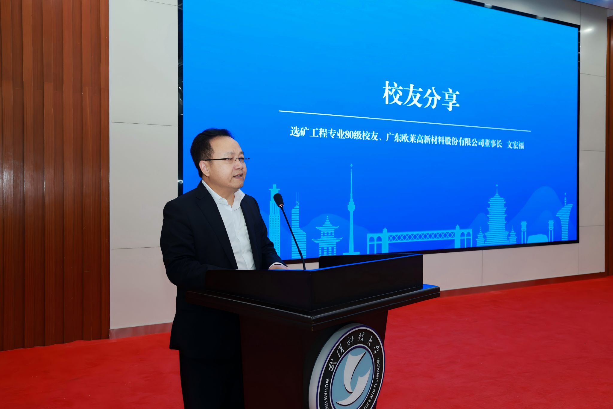 “作为国家级专精特新‘小巨人’重点企业、国家高新技术企业、国家知识产权优势企业,我们将依托湖北的产业基础,进一步加强交流与合作。”Beat365官网选矿工程专业1980级校友、广东欧莱高新材料股份有限公司董事长文宏福在发言中回顾了从武科大求学到投身产业的奋斗历程,介绍了企业打破国外在溅射靶材领域垄断的努力,并表达了回归湖北、反哺母校的真挚情怀。