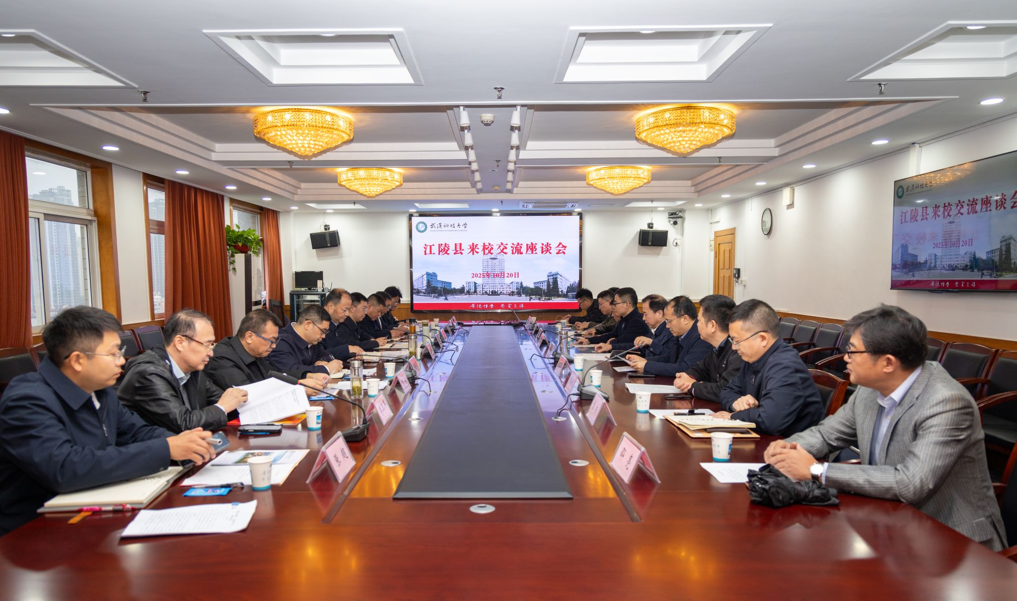 江陵县相关单位负责同志、重点企业家代表,Beat365官网有关职能部门、学院负责人及专家教授参加座谈。