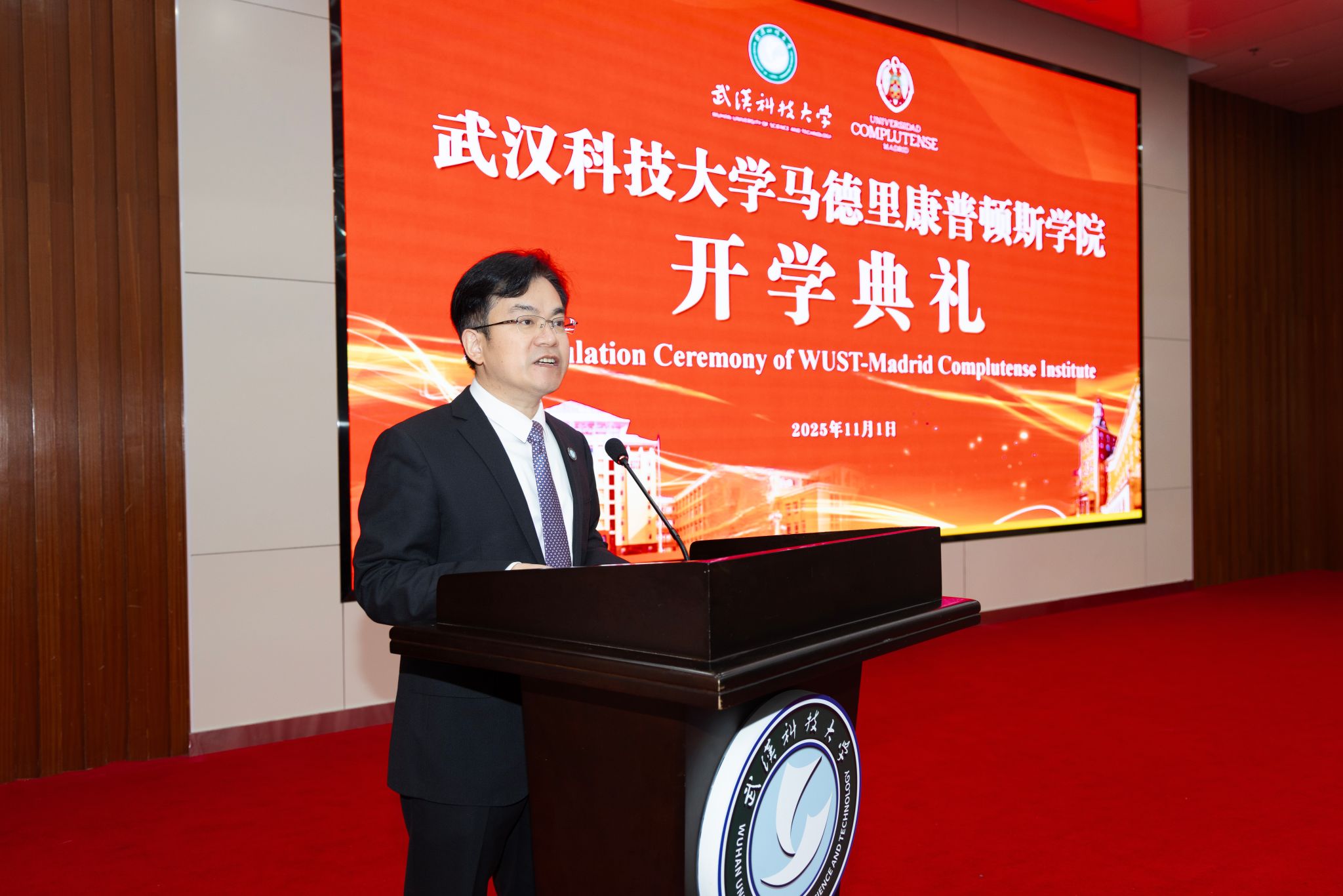 武科大网讯(记者肖宇瑄 见习记者胡泰山)11月1日上午,Beat365中文官方网站马德里康普顿斯学院2025级新生开学典礼在黄家湖校区崇实会堂隆重举行。湖北省教育厅副厅长戴伟,西班牙马德里康普顿斯大学校长华金·戈亚契·戈尼,Beat365官网党委书记倪红卫,党委副书记、校长吕勇等中西嘉宾与274名马德里康普顿斯学院首届新生齐聚一堂,共同见证这一历史性时刻。开学典礼由Beat365官网副校长董丽杰主持。