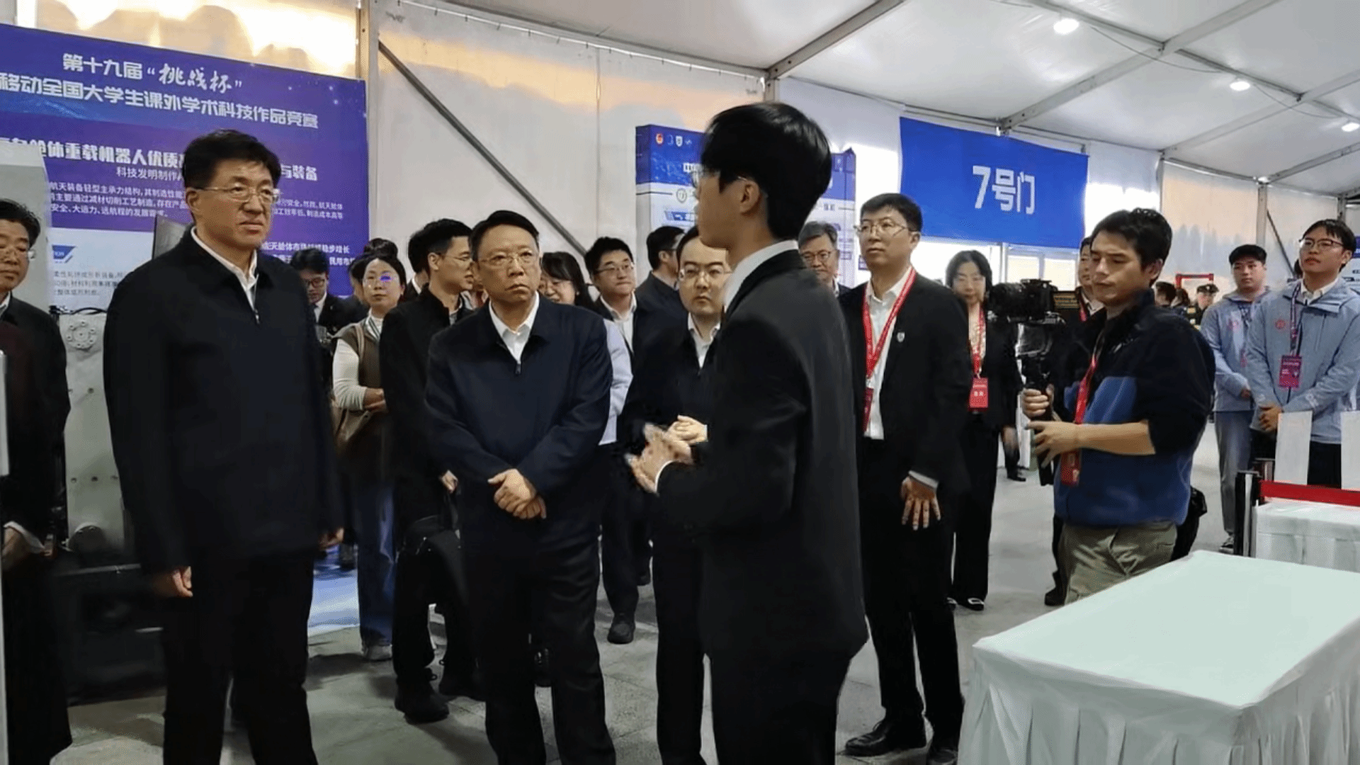 在“挑战杯”竞赛科创报国汇报会暨颁奖仪式前,来自汽车与交通工程学院的作品——“川藏铁路大吨位多轴平板车智能控制系统”,作为被竞赛组委会选中的5件作品之一,在布展会场向团中央第一书记阿东进行展示汇报。
