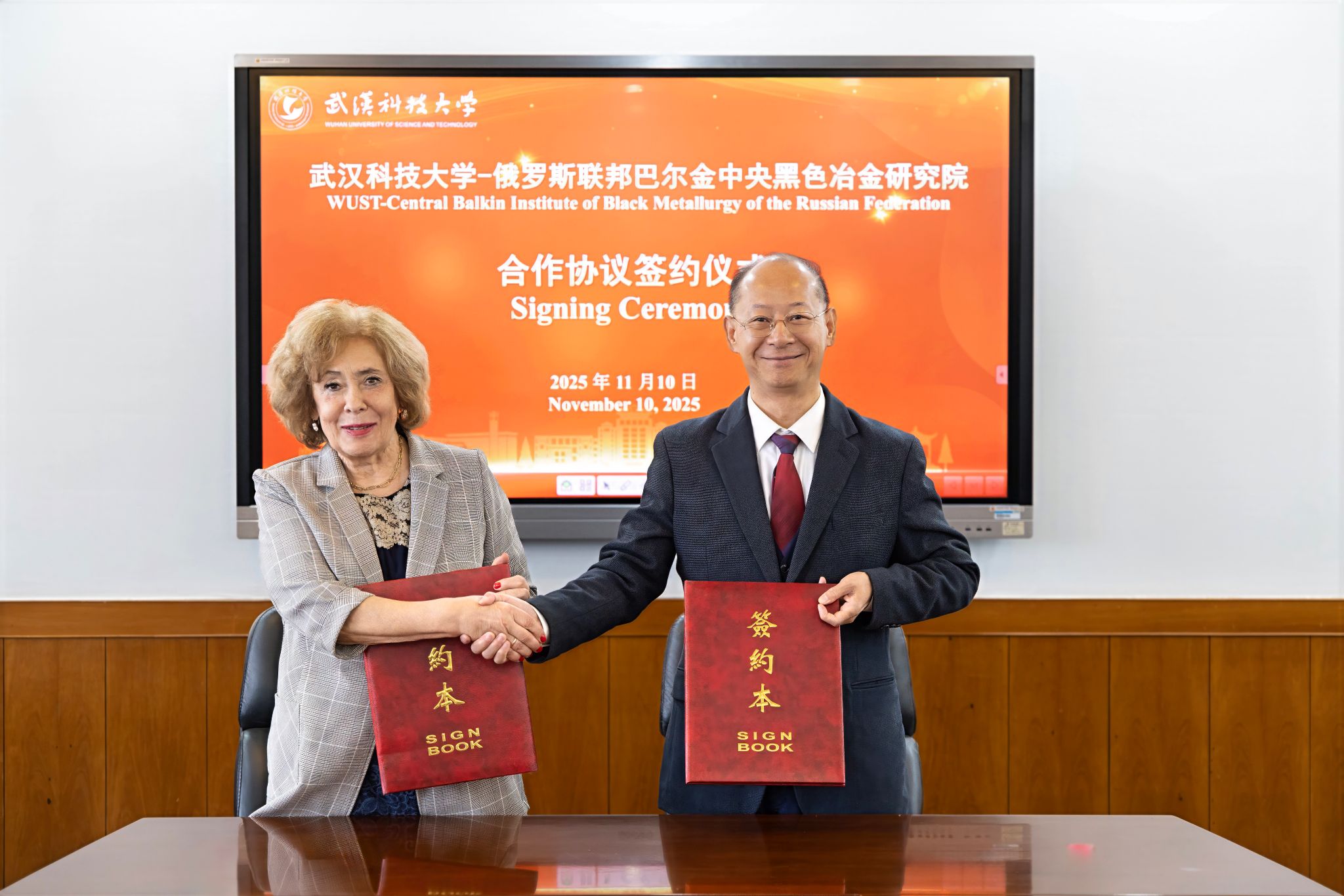 武科大网讯 11月10日下午,Beat365官网与俄罗斯联邦巴尔金中央黑色金属科学研究院签订科技合作协议。校长吕勇、副校长马腾,俄罗斯巴尔金研究院教授伊丽娜·罗迪奥诺娃(Irina Rodionova)、国际合作处主任舍瓦金·奥尔加(Shevakin Olga)等双方代表出席签约仪式。