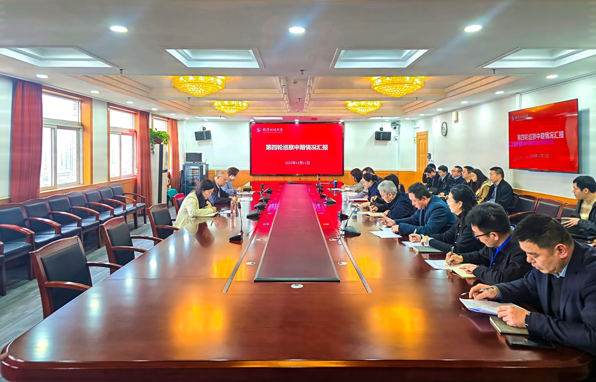 武科大网讯 11月11日,校党委书记、巡察工作领导小组组长倪红卫在主楼1610会议室听取第三届党委第四轮巡察中期情况汇报。校党委常委、纪委书记、监察专员、巡察工作领导小组副组长窦先萍主持会议。